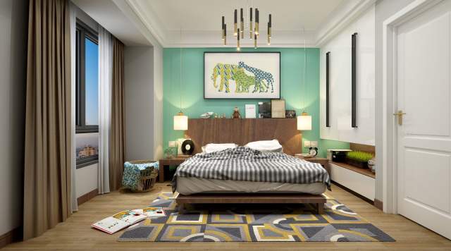 一款比較小清新的臥室裝修,整個臥室裝修以簡單清新的設計為主題,所以在背景墻顏色的選擇上就偏向了明亮清雅的顏色,墻上搭配的設計也是相當的不錯的。