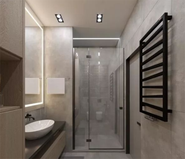 所謂分區光源設計,就是根據洗漱臺、淋浴區和馬桶區功能區都分別設置光源,多方位補光。這樣設計對墻面的折射也會更強,光線更充足。多方位補光,比起一盞主燈光照更強。