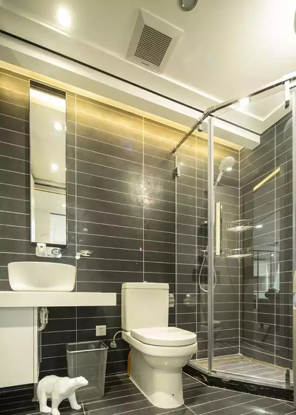 配合排氣扇的通風抽濕,沒有窗戶的衛生間更應該做好干濕分離,讓排氣扇有針對性地排濕抽風。用玻璃隔斷將產生水汽的淋浴區隔開,這樣更有利于抽風機抽走水汽,保持衛生間干爽。