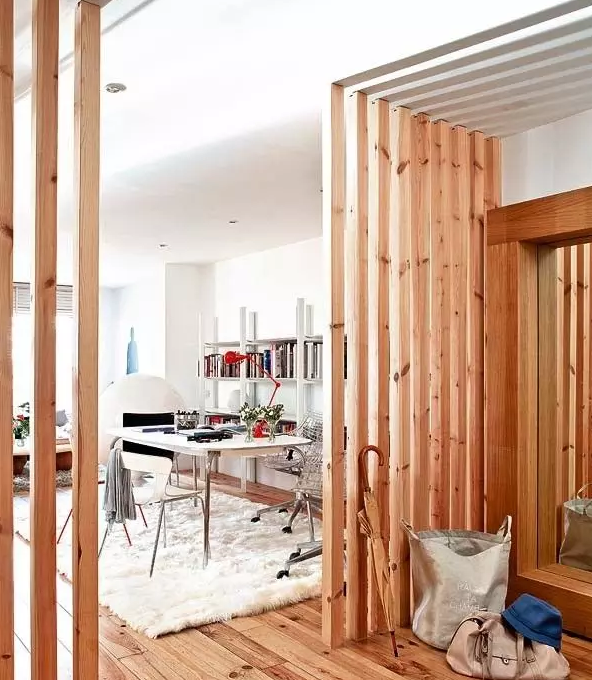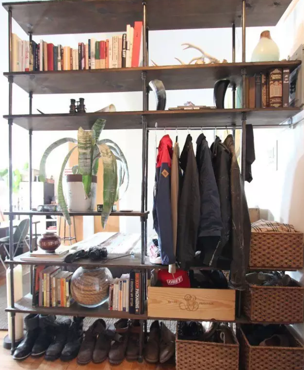 書架作為隔斷是我們多次提倡過的,擺到玄關處也未嘗不可。