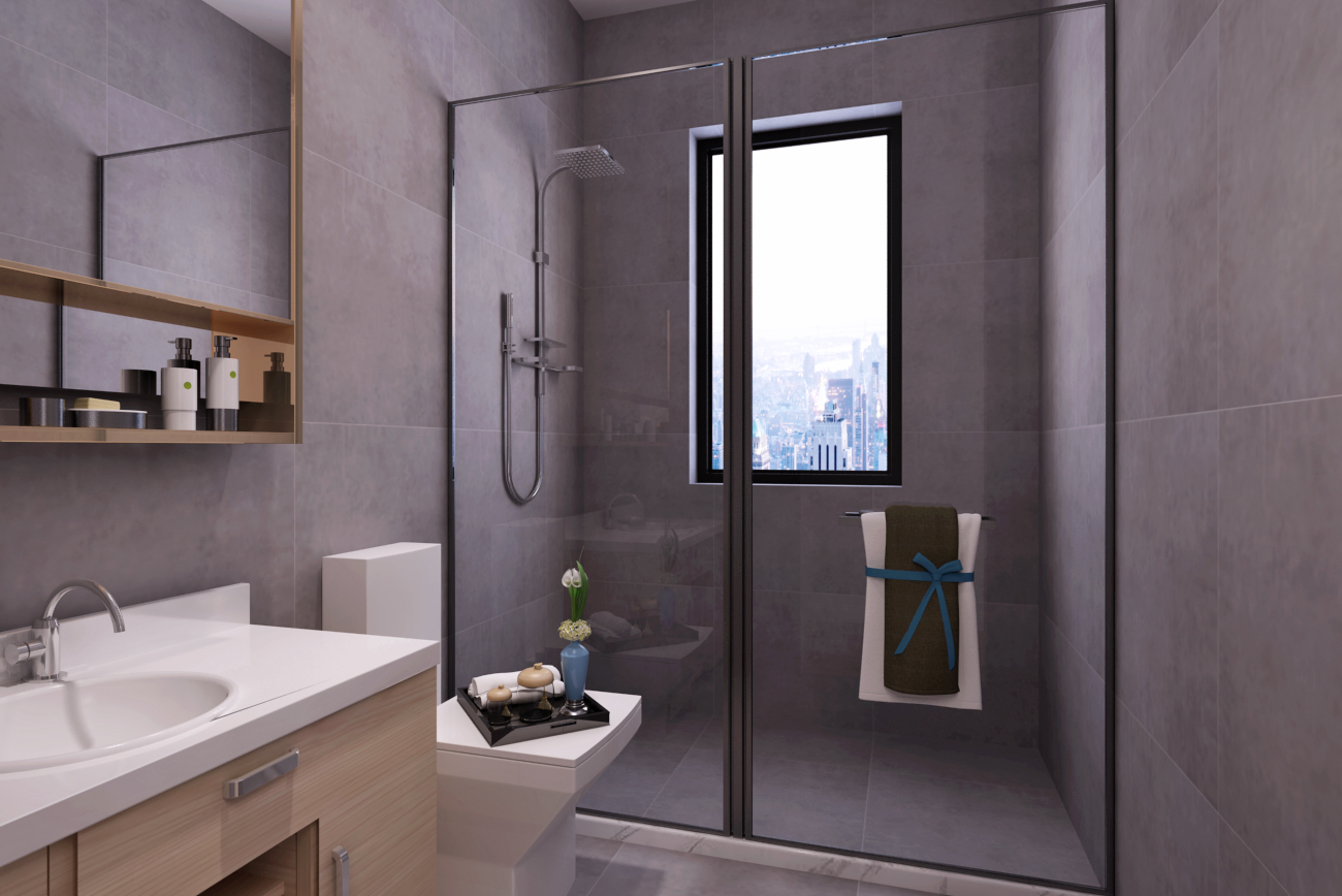 如果預算有限,空間不大的情況下,就不要再做浴室門了,可以在淋浴區,直接掛上浴簾,記得底部做個擋水條,干濕分離,不易發霉發臭。