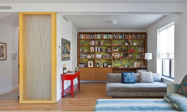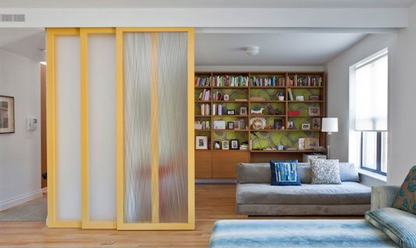 △將小戶型的客廳用滑門隔斷,這樣當朋友來時,就可以兼作客臥了。