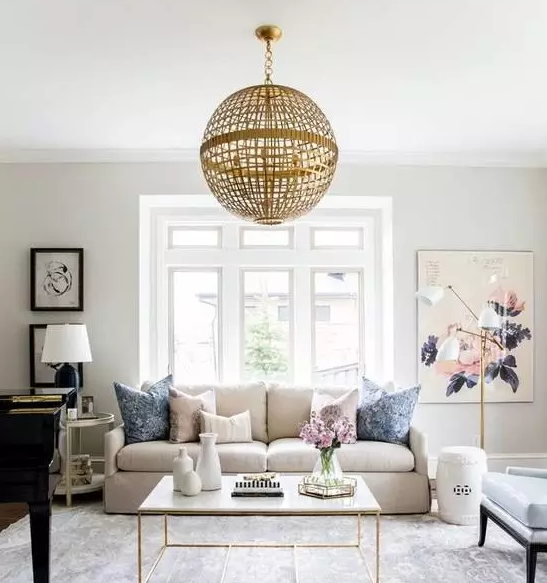 如果不想裝吊頂,可以利用石膏線、吊燈、射燈、以及和墻面樣式顏色的配合,都很容易營造出質感。