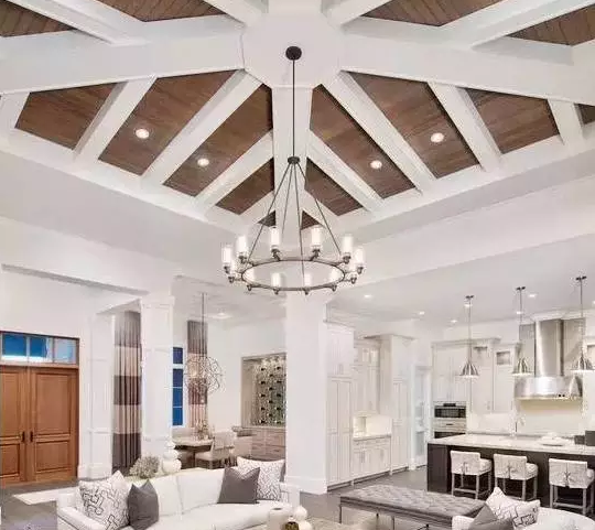 2、如果是別墅的客廳吊頂選擇青岡會比較好。如果是小客廳的話,建議選擇合成材料的木龍。全部吊頂可以采用輕鋼龍骨石膏板吊頂比較好;