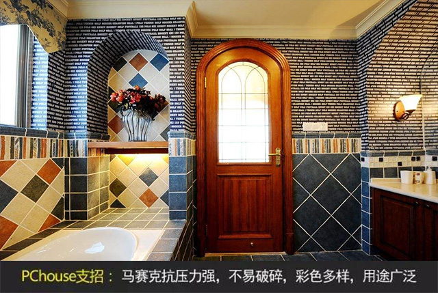 馬賽克瓷磚是地面和墻面裝飾使用較多的裝飾建材之一。馬賽克具有精致小巧、色澤多樣,可用來拼出各種美觀的圖案,對于墻面和地面的裝飾效果遠遠的超過了普通的墻磚和地磚。馬賽克種類繁多,規格多,薄而小,質地堅硬,耐酸、耐堿、耐磨、不滲水,抗壓力強,不易破碎,彩色多樣,用途廣泛。