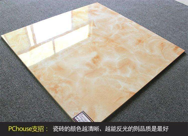 觀察瓷磚的表面的顏色和平整度。一般來說,瓷磚的顏色越清晰、越能反光的最好。另外看一下有沒有針孔,針孔容易堆積贓物。也可以從痕跡看品質,檢查瓷磚的表面質量,可以用硬物刮一下瓷磚釉面從而判斷瓷磚的表面。