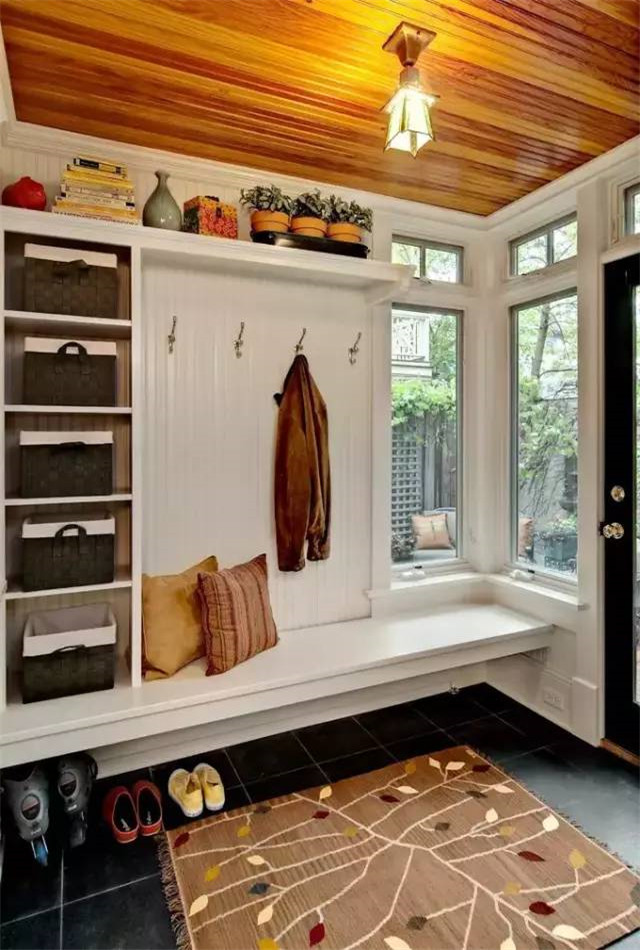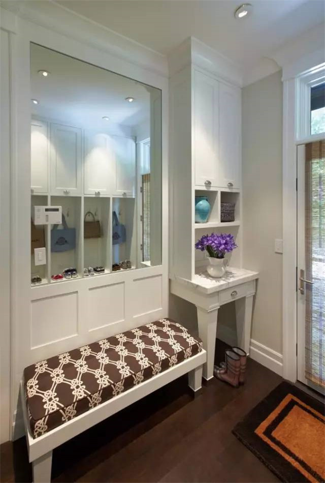 在中國,很多的家庭會選擇玄關放置鞋柜,這樣鞋子有地方去了,可是不知道大家發現沒有,包包和外套就要去找沙發放啦,其實如果能夠在門口玄關處放置一個小型衣帽間,不僅解決了家里包包外套亂放的現象,還幫您實現了衣帽間的夢想呢!下面是一些比較好的玄關設計案例,希望能在您家裝修上為您添加創意。