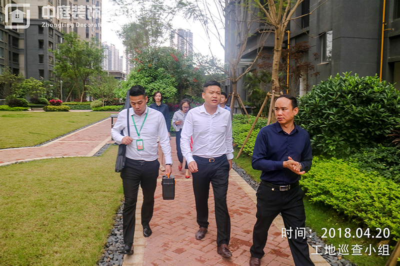 中庭裝飾實行每周"總裁大巡檢"由集團總裁丁總親自帶隊進行巡查,以便業主更好地實時了解我們在建工地的進展情況,工地全透明化,嚴格規范標準施工,嚴格實行"十項砸無赦"機制,我們用事實彰顯價值,用專業的施工品質為您的雅居保駕護航。