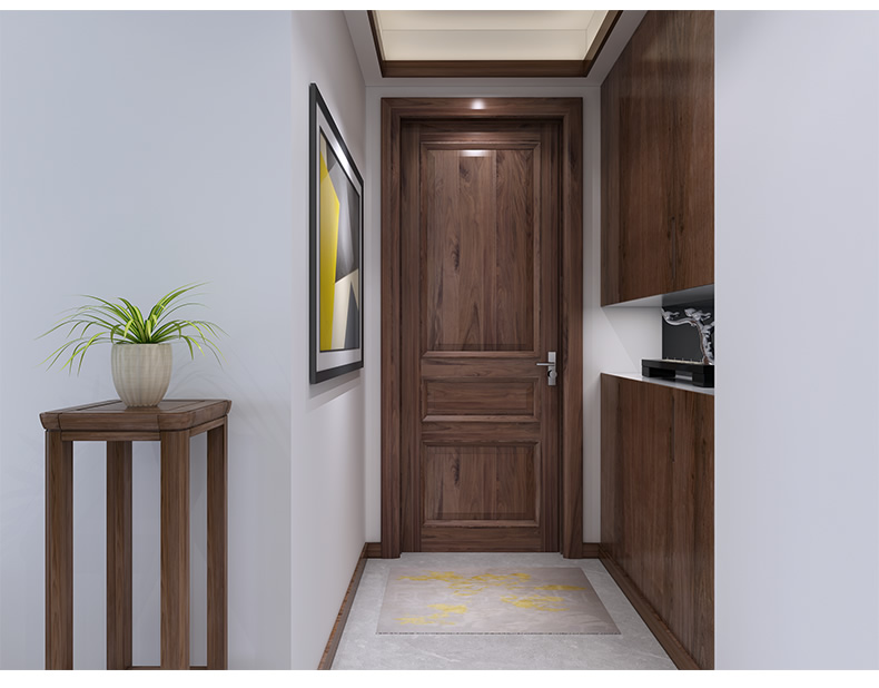 4. 看門套和門扇是否都為同種材質,如果實木門用密度板做門套,受潮時易發泡,門框就會變形。