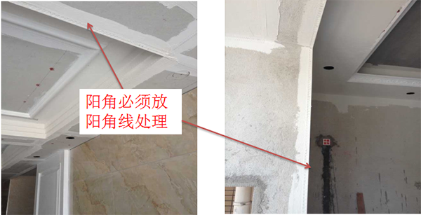 陰角彈好墨線用石膏打平,陽角用陽角收直口。