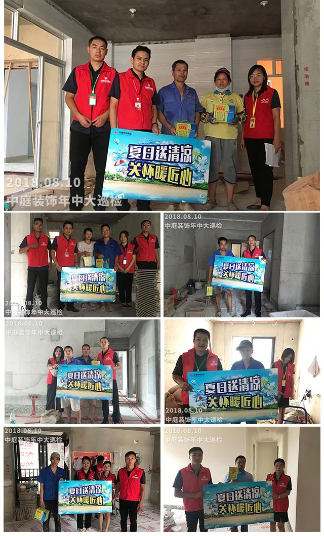 炎炎夏日,驕陽似火,最高氣溫持續(xù)達(dá)到39℃!所有堅(jiān)守在高溫一線的家人們戰(zhàn)高溫、斗酷暑,表現(xiàn)出了高強(qiáng)度的敬業(yè)奉獻(xiàn)精神,致敬這些最可愛的人!借此年中大巡檢之際,由集團(tuán)總裁丁總帶領(lǐng)下,送清涼小組兵分6路,從金湖廣場(chǎng)出發(fā),向包括青秀區(qū)、興寧區(qū)、五象新區(qū)、江南區(qū)、西鄉(xiāng)塘區(qū)、邕寧區(qū)南寧六大城區(qū)方向的工地進(jìn)發(fā),為在酷暑高溫下堅(jiān)守一線的匠人師傅送去一份夏日的清涼。