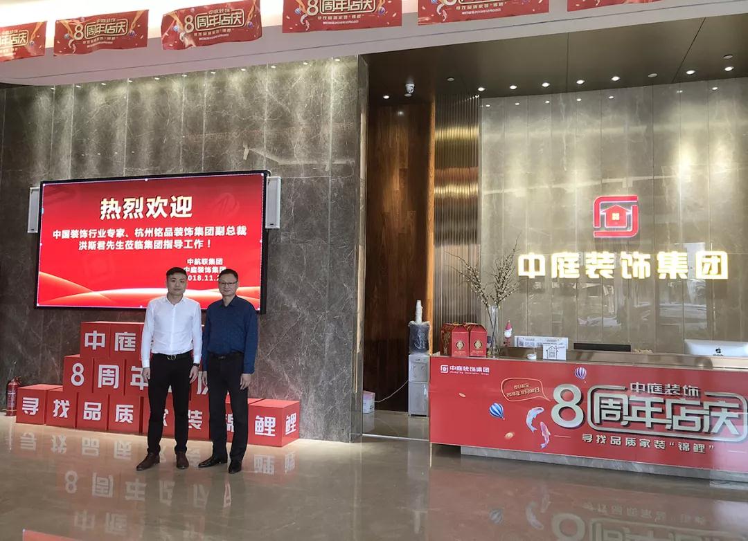 洪斯君先生在集團(tuán)領(lǐng)導(dǎo)的陪同下參觀了中庭裝飾集團(tuán)辦公環(huán)境,展示廳及樣板房。雙方就目前裝修行業(yè)發(fā)展的現(xiàn)狀、市場情況,如何為廣大業(yè)主朋友提供更好的裝修服務(wù)展開了深入地交流探討。