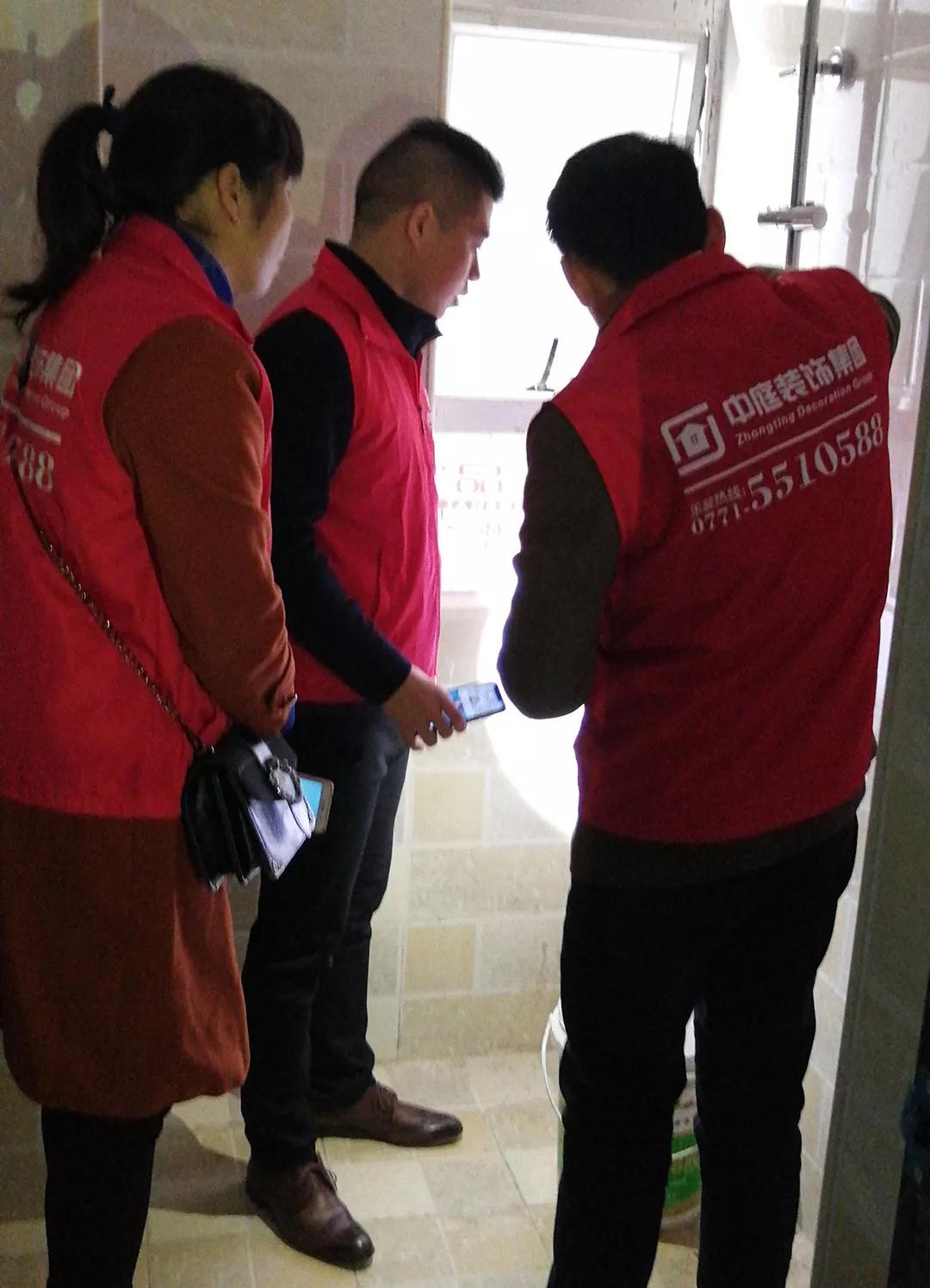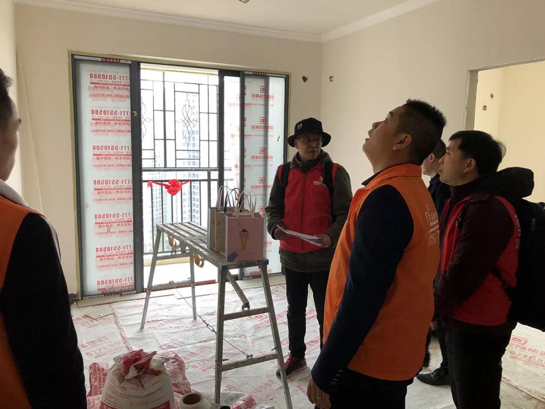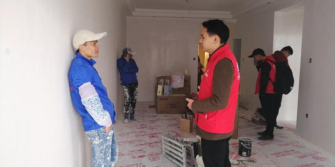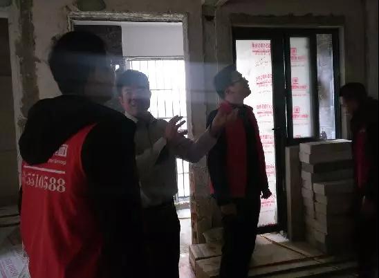 巡檢遇上業主正在施工現場,巡檢人員和業主交流;業主表示對公司的服務比較滿意,項目經理和現場的工人都很好,有朋友需要裝修肯定會第一個推薦集團。
