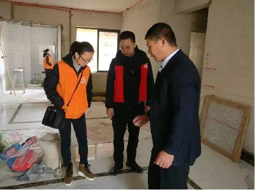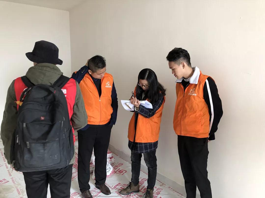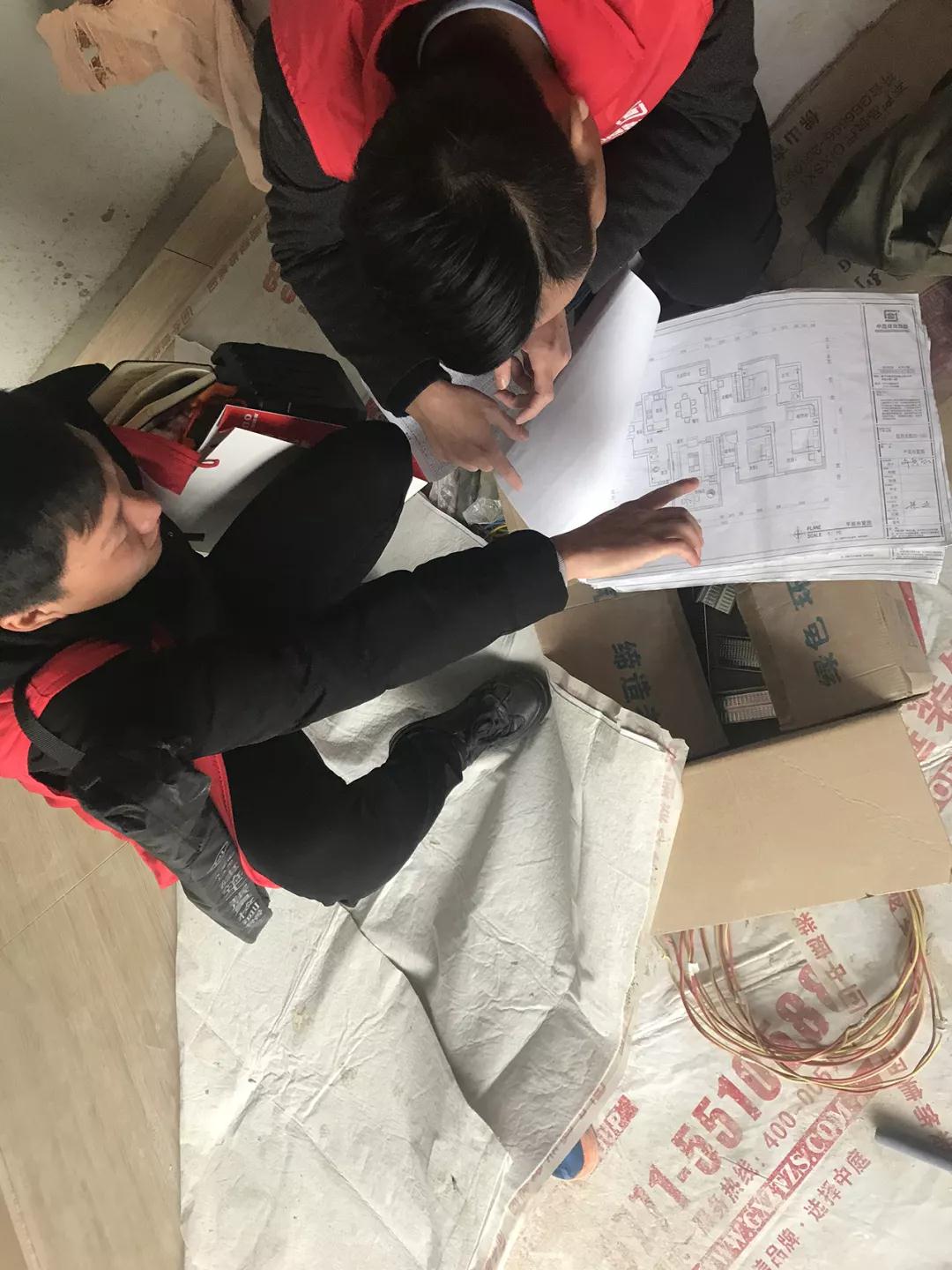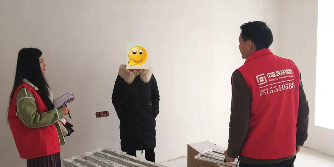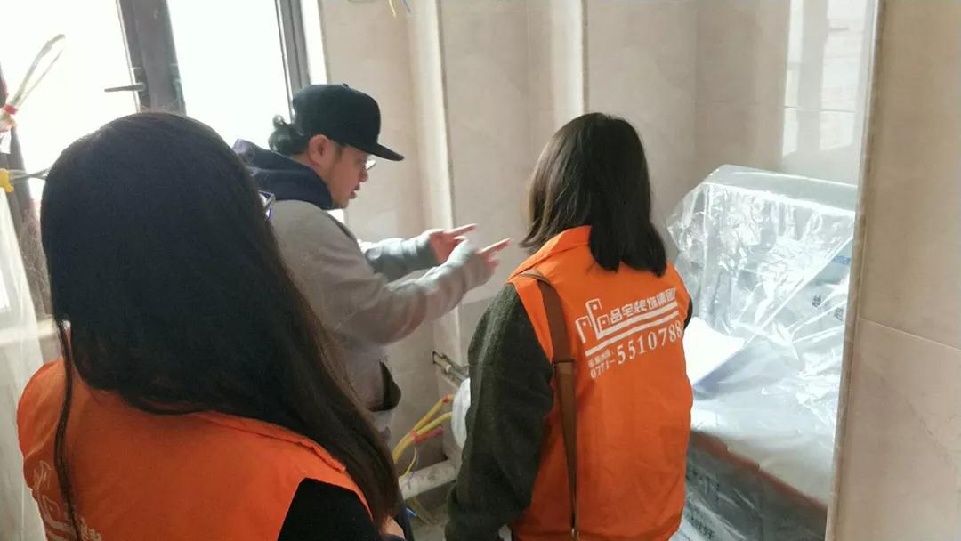 巡檢遇上業主正在施工現場,巡檢人員和業主交流;業主表示對公司的服務比較滿意,項目經理和現場的工人都很好,有朋友需要裝修肯定會第一個推薦集團。