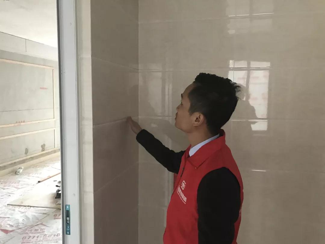 瓷磚出現破損,巡檢人員現場砸掉并責令整改。
