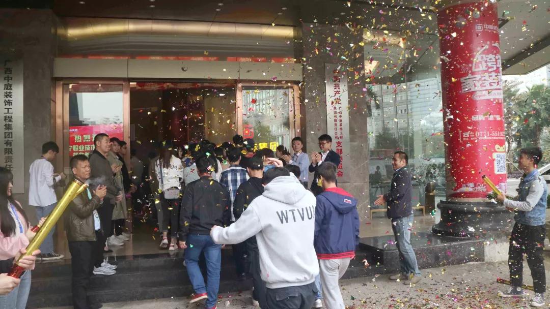 中庭裝飾集團(tuán)家人在集團(tuán)大門列隊(duì)迎接,對南職師生的到來表示熱烈的歡迎。