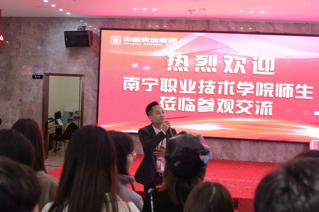 中庭裝飾集團(tuán)被南寧職業(yè)技術(shù)學(xué)院選為校企合作人才培訓(xùn)示范基地,組織設(shè)計(jì)專業(yè)60名學(xué)生到我司進(jìn)行參觀交流。