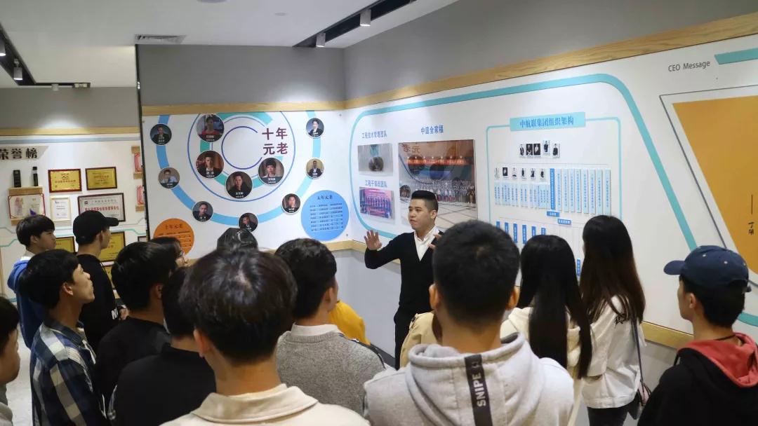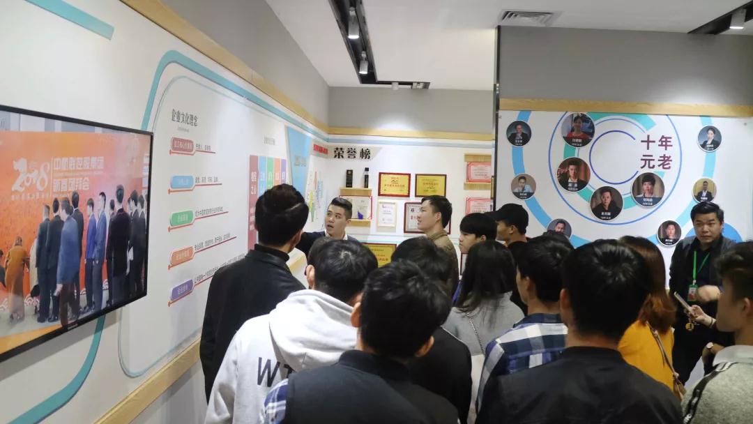 張總帶領(lǐng)學(xué)生參觀中庭裝飾集團(tuán)文化長廊,給同學(xué)們介紹了關(guān)于中庭裝飾集團(tuán)組織架構(gòu),企業(yè)愿景、使命、價(jià)值觀以及人文關(guān)懷,愛心公益等方面的企業(yè)文化。