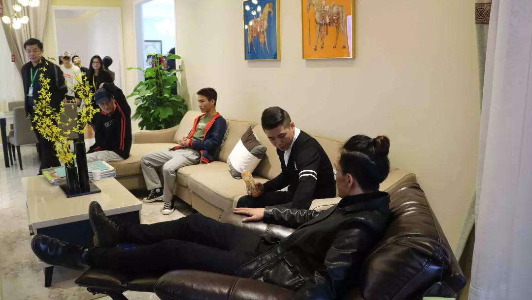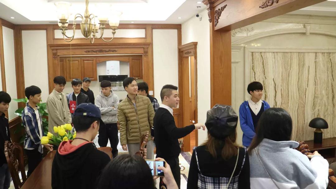 中庭裝飾集團(tuán)二樓擁有9個(gè)設(shè)計(jì)風(fēng)格的樣板間,張總和楊總帶領(lǐng)學(xué)生參觀各大風(fēng)格樣板間,給同學(xué)們講解樣板間的設(shè)計(jì)風(fēng)格,感受其中的設(shè)計(jì)細(xì)節(jié)。
