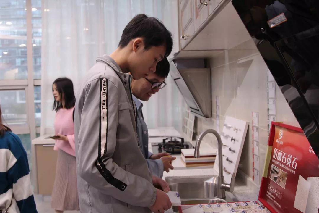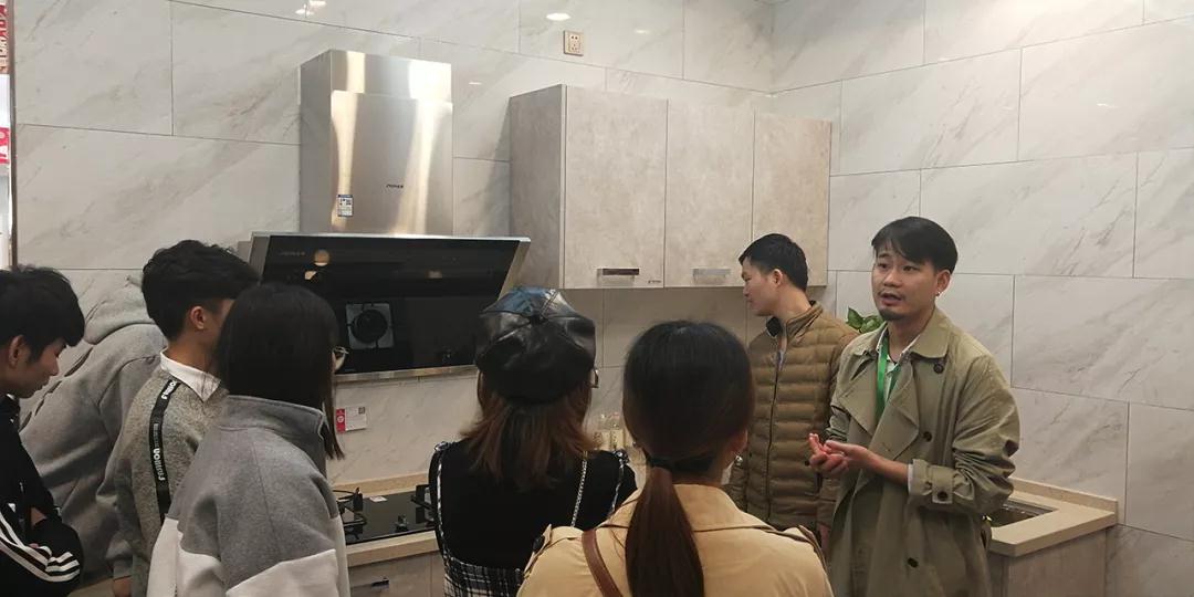 在廚房展示區(qū),設(shè)計(jì)部經(jīng)理韋昌豪和學(xué)生分享:“如果同學(xué)們今后決心要成為一名設(shè)計(jì)師,現(xiàn)在開始就要關(guān)注一些基礎(chǔ)的設(shè)計(jì)上的問題,對廚房的配置多做基礎(chǔ)的了解,平時(shí)也可以自己拿尺子量一些門、窗的尺寸。設(shè)計(jì)源于生活,設(shè)計(jì)師做出的設(shè)計(jì)也要根據(jù)現(xiàn)實(shí)生活來落地。”