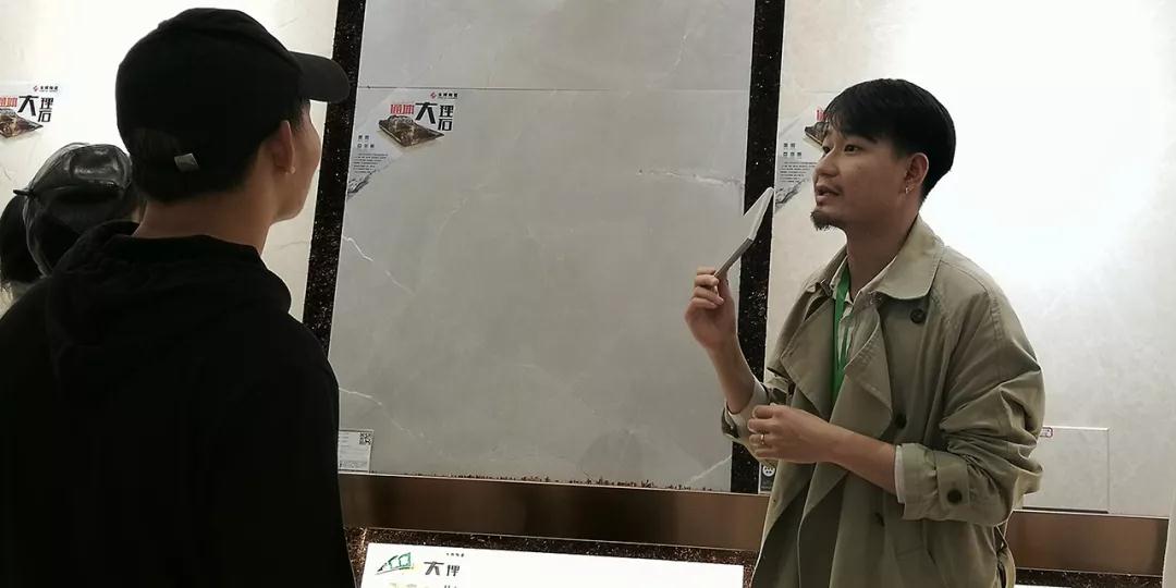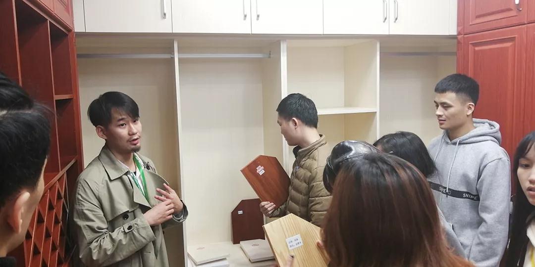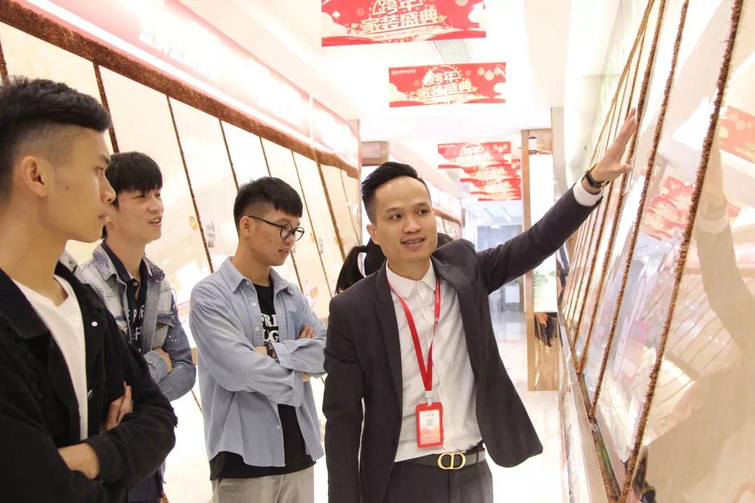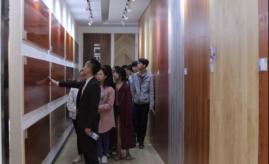 材料展示區(qū)由運(yùn)營部總經(jīng)理?xiàng)羁偤驮O(shè)計(jì)部經(jīng)理韋昌豪帶領(lǐng)學(xué)生參觀。