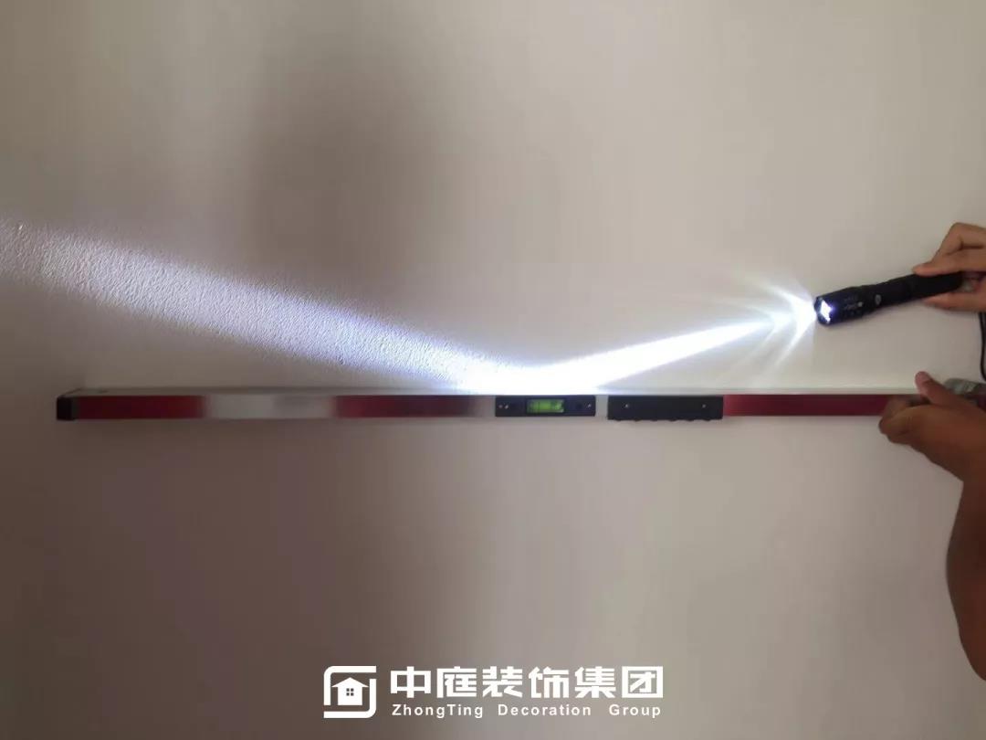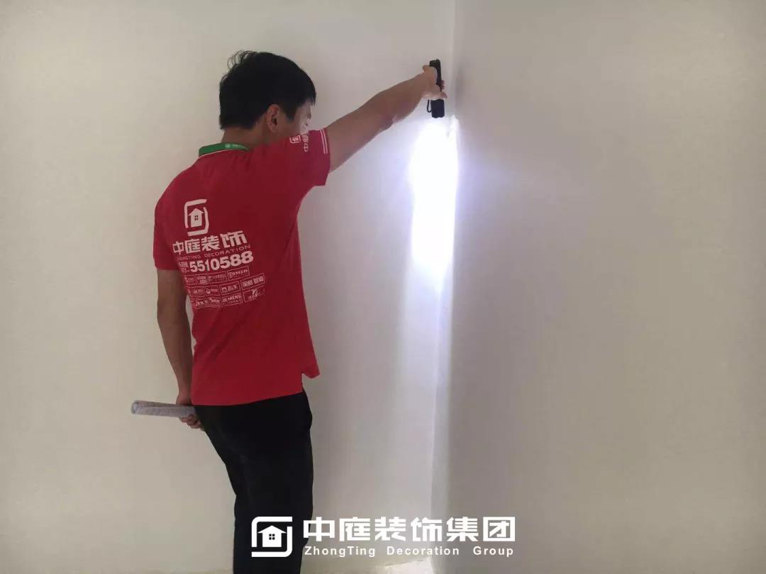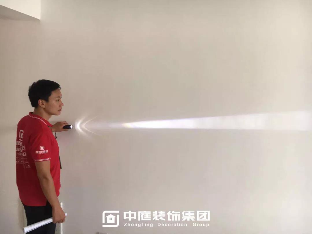 ▲檢查墻體膩子是否平整光滑