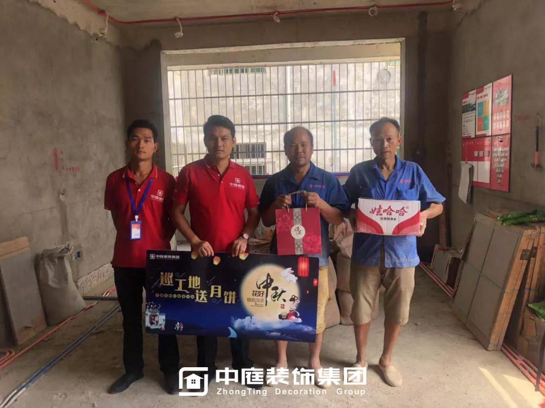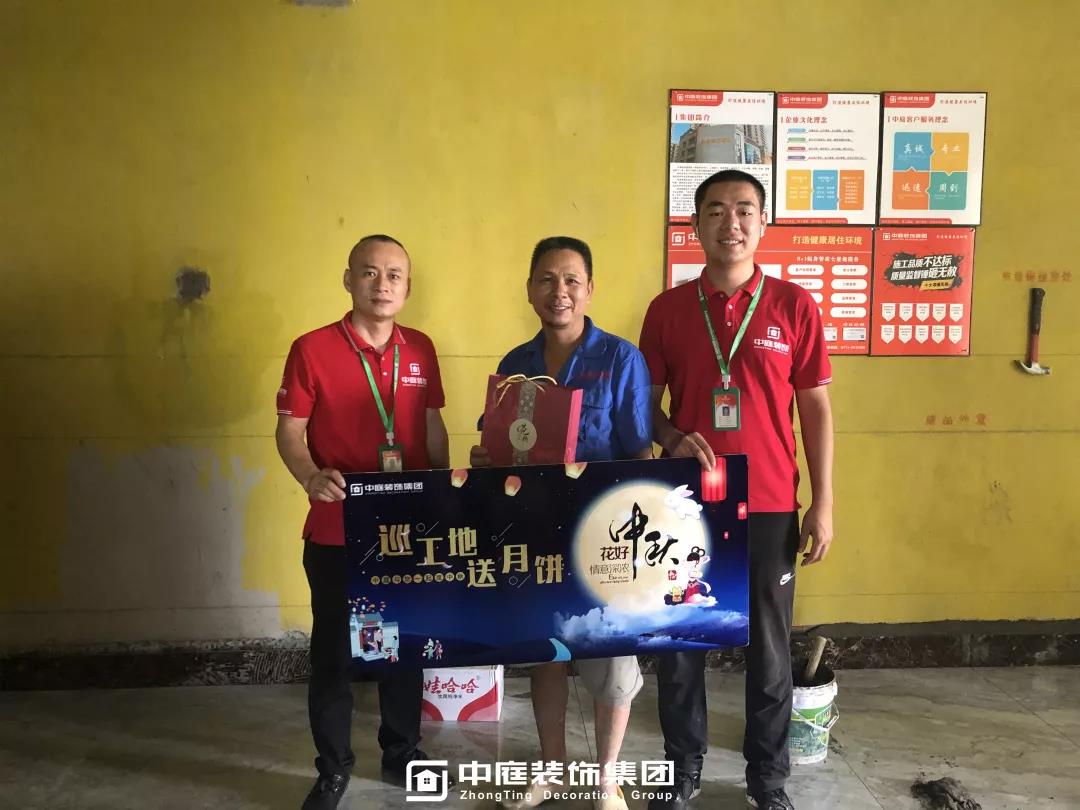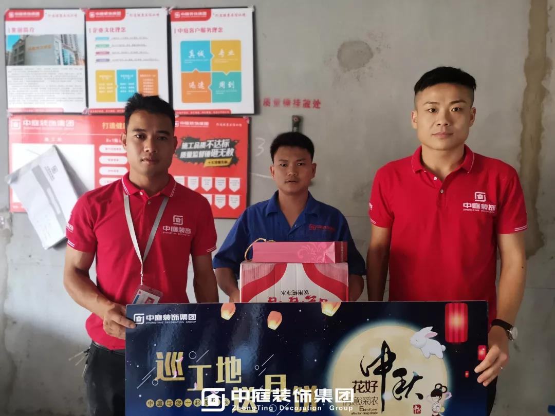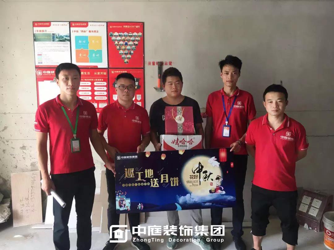 工程質量的好壞是檢驗一個裝修公司實力的標準之一,中庭裝飾集團一直把提升工地質量作為首要工作,所有施工工地均是高標準,嚴要求,在工程質量上始終嚴格把關,只為打造更多幸福品質家。高品質工地的輸出也離不開奮戰在一線的匠人們的付出,在中秋來臨之際,集團特地為工人師傅們送去了關懷。