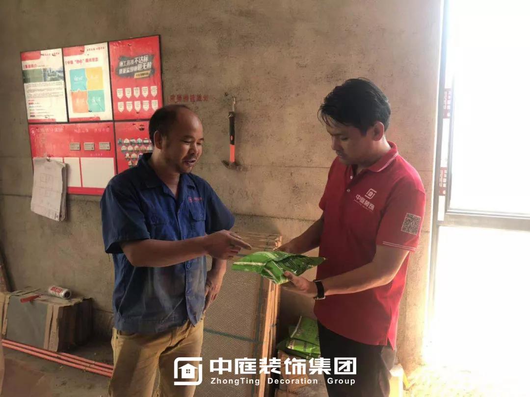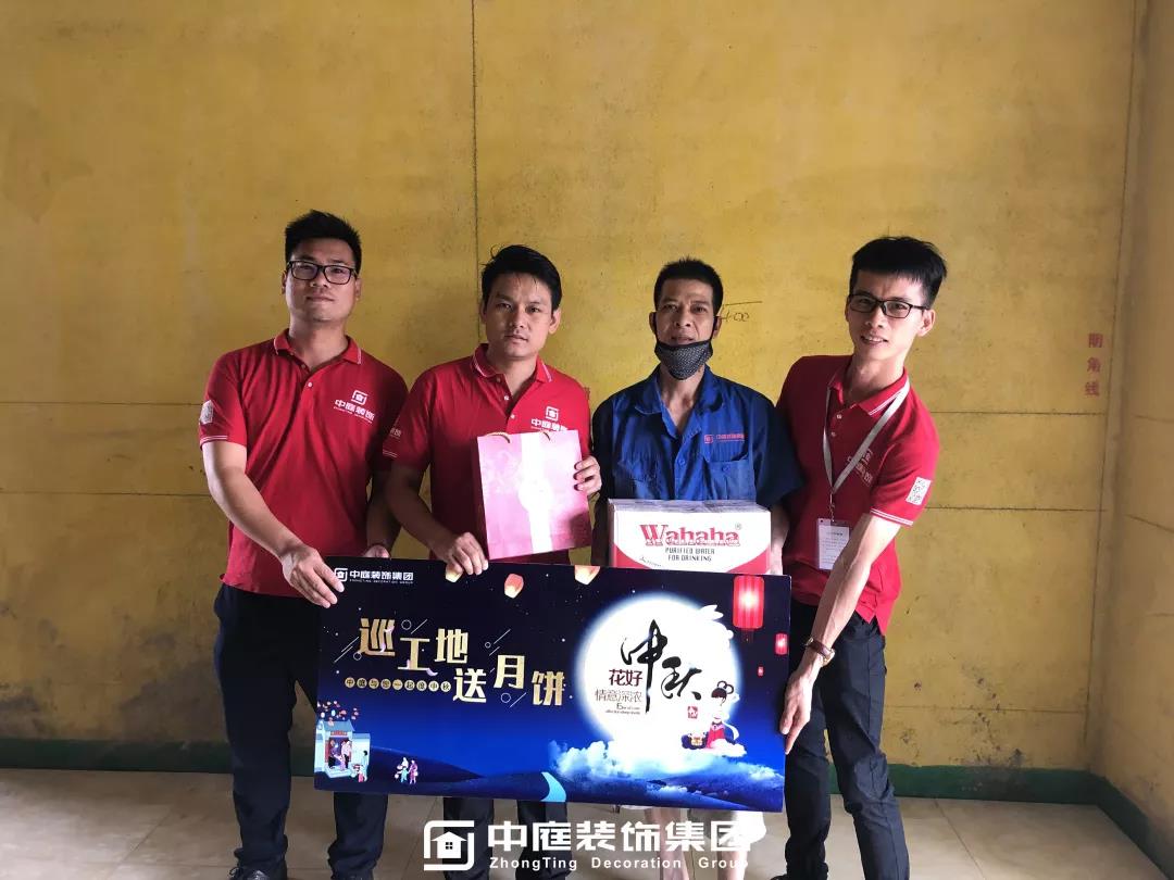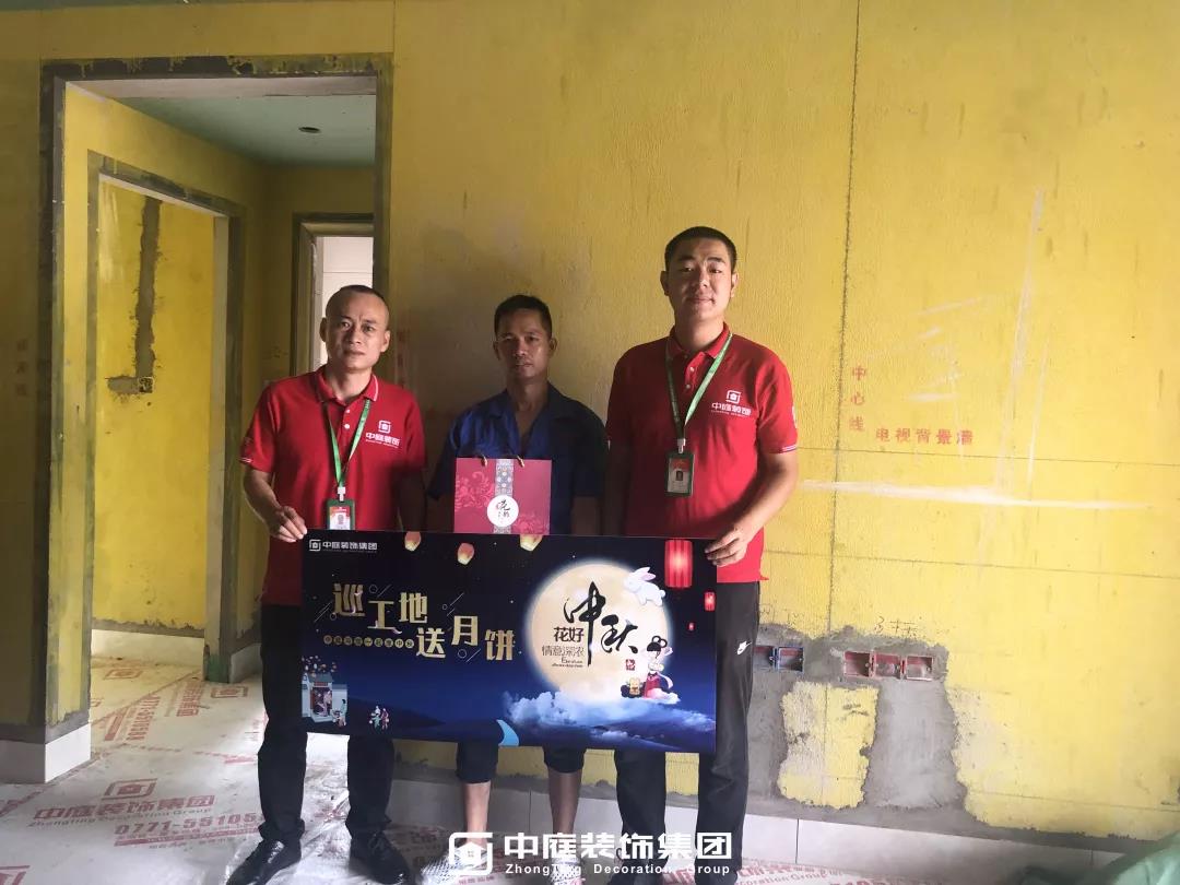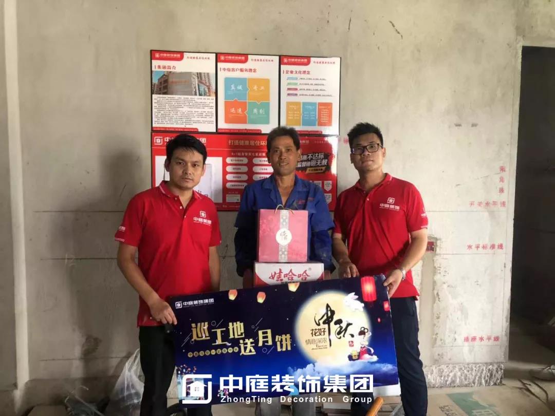 工程質量的好壞是檢驗一個裝修公司實力的標準之一,中庭裝飾集團一直把提升工地質量作為首要工作,所有施工工地均是高標準,嚴要求,在工程質量上始終嚴格把關,只為打造更多幸福品質家。高品質工地的輸出也離不開奮戰在一線的匠人們的付出,在中秋來臨之際,集團特地為工人師傅們送去了關懷。