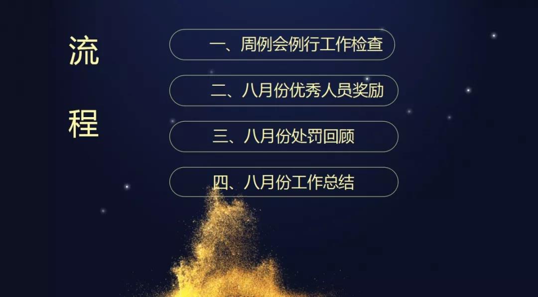 在總結8月份工作上,項目經理個人月度達標率和客服回訪業主評分成為衡量他們月度工作的指標,每到這個環節,大家的心都懸到了喉嚨眼,但凡工藝達標率和安全文明形象達標率沒有達到90%及以上的,都要上臺面向所有人承諾,下月勢必做好工地管理,雙向達標,否則按制度處罰!