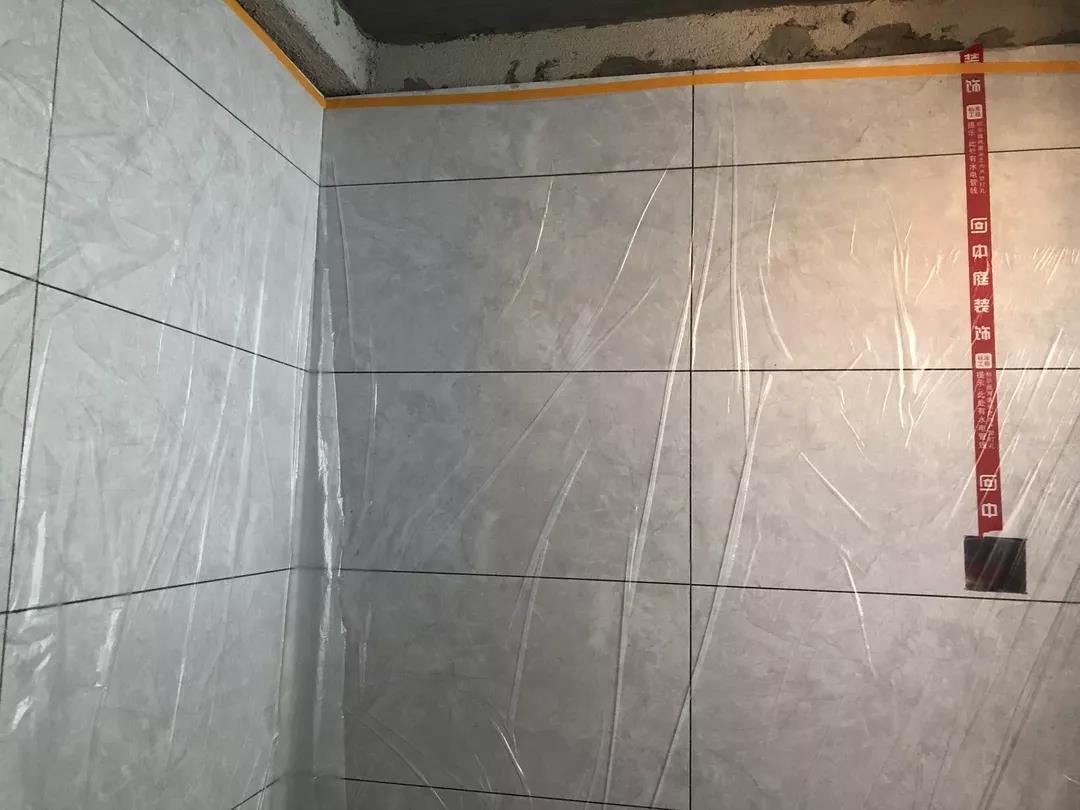 ▲每個區域鋪貼完畢后必須用薄膜封閉,并關閉貼磚區域的門窗,防止風干過快。