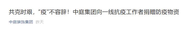 共克時艱,“疫”不容辭!中庭集團向一線抗疫工作者捐贈防疫物資