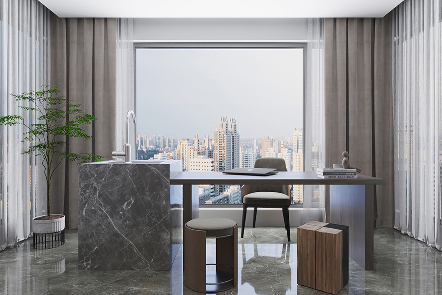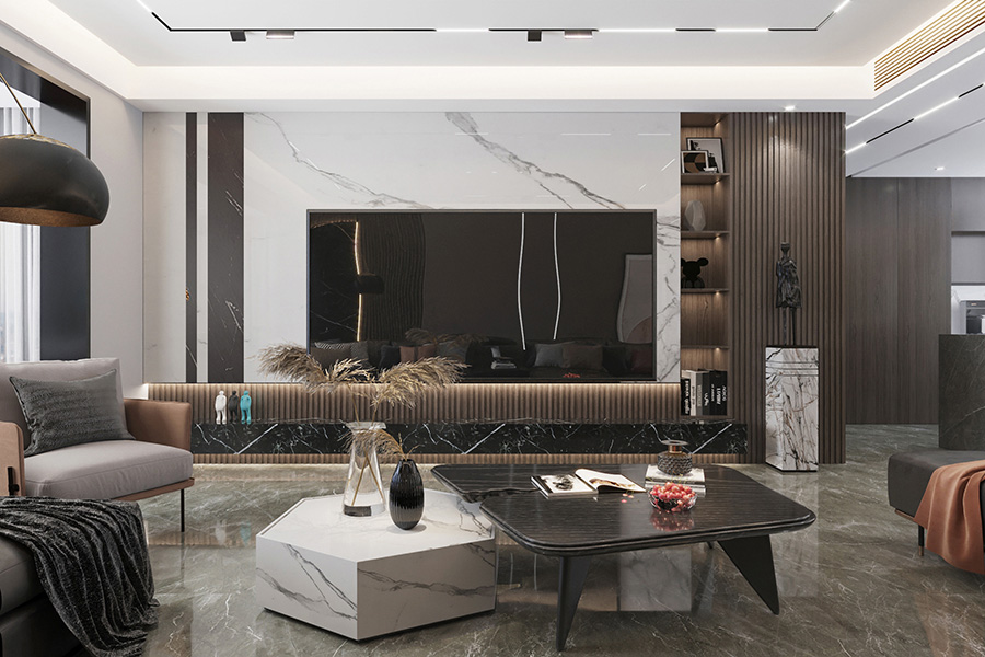 本案為一套現代輕奢風格案例。精致的輕奢與優雅的現代簡約交融,演繹出超凡脫俗的空間美。灰色基調下,優雅的石膏線與溫潤的木飾面貫穿,三者交互,營造溫馨的生活氛圍,為居住者打造一個舒適的居住環境。