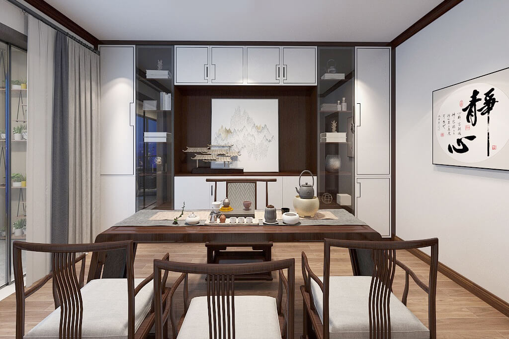 瀏覽量:408在空間上的裝飾多采用簡潔硬朗的直線條,直線裝飾在空間中的使用,不僅反映出現(xiàn)代人追求簡單生活的居住要求,迎合主人家對中式家具的喜愛,中式的家具追求內(nèi)斂、質(zhì)樸的設(shè)計(jì)風(fēng)格,更加實(shí)用、更富現(xiàn)代感。新中式風(fēng)格的古典高雅又含有現(xiàn)代風(fēng)格的時尚元素,通過對傳統(tǒng)文化的認(rèn)識,將現(xiàn)代元素和傳統(tǒng)元素結(jié)合在一起,以現(xiàn)代人的審美需求來打造富有傳統(tǒng)韻味的事物,讓傳統(tǒng)藝術(shù)在當(dāng)今社會得到合適的體現(xiàn)。