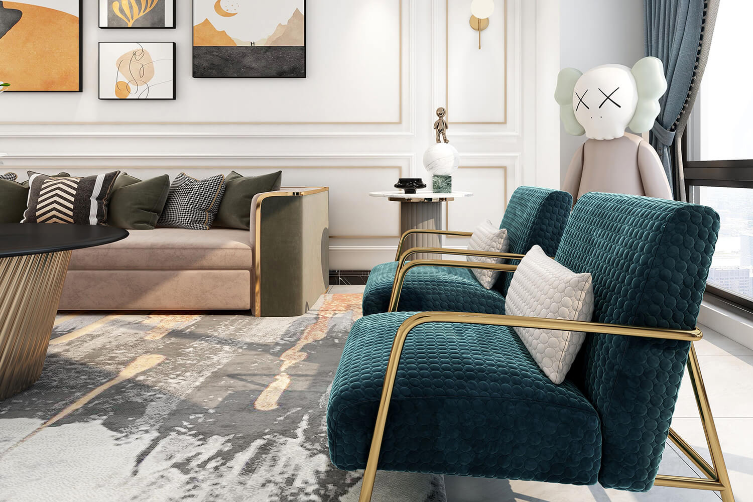 瀏覽量:392本案總面積118㎡,整體配色以白色為主色調(diào),用充滿清新氣息的綠與藍(lán)為空間帶來清爽感覺,點(diǎn)亮空間視覺色彩感知,展現(xiàn)別具一格的視覺感,華麗的金屬色澤增添輕奢質(zhì)感。