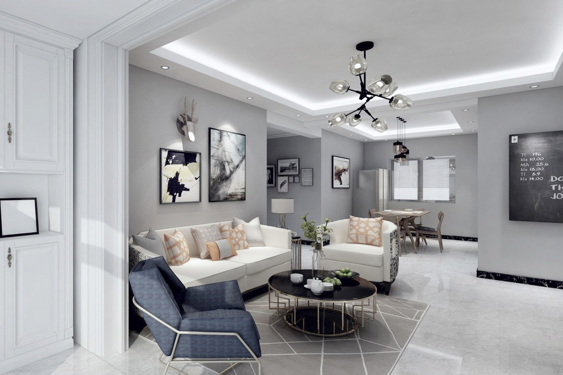 瀏覽量:315房屋整體主色調:黑白灰,踏入房門首先看到的是灰色墻面和黑色的矮柜形成鮮明的對比。給人的第一感覺有浪漫、時尚,卻不失美式中特有的奢華。墻面以灰色為主,地板以深灰色為主色。整體空間的動線非常流暢,給人很舒服的感覺。客廳整體設計偏美式,硬裝選色大氣,配以布藝沙發的軟裝,硬裝配以現代風格的電視背景墻,整體給人的感覺穩重而簡潔。美式的顏色不可過于濃重,在混搭風格中,只可點綴,它的作用是調節空間整體的氣氛。