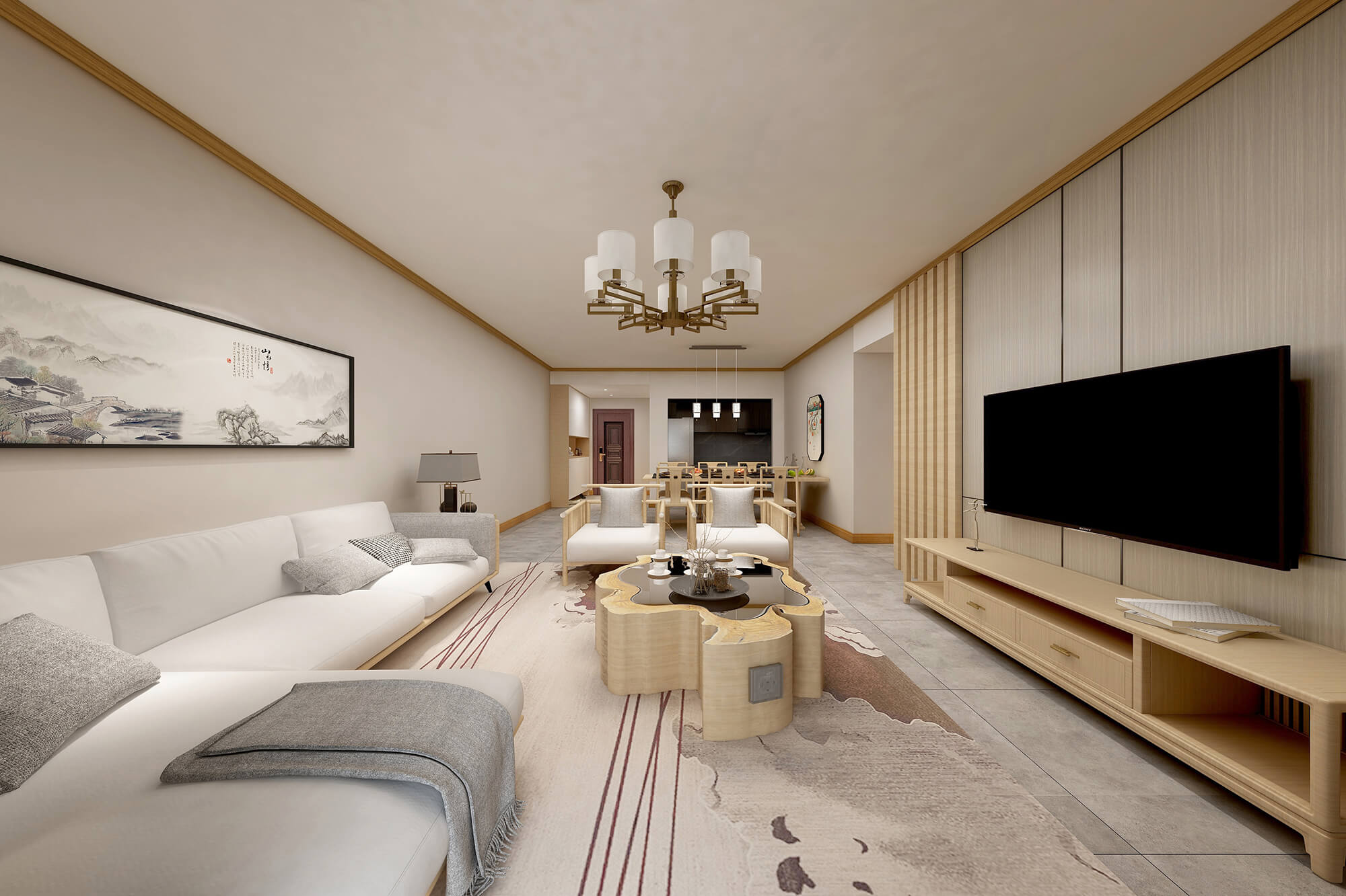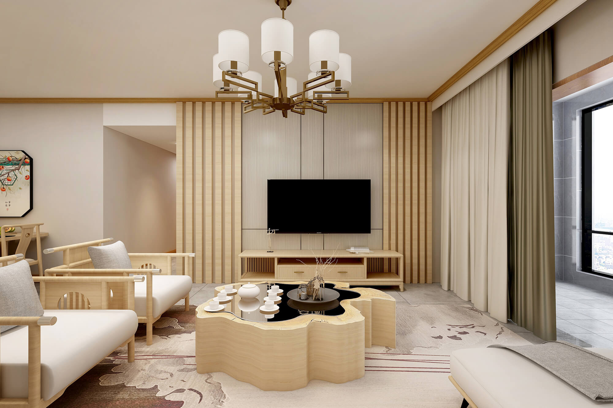 本案為5房2廳2衛,總面積155㎡。業主喜歡禪意新中式的感覺,所以整體色彩搭配大都采用極簡的淺色原木系來營造一種寧靜愜意的感覺,營造個性家居生活空間。
