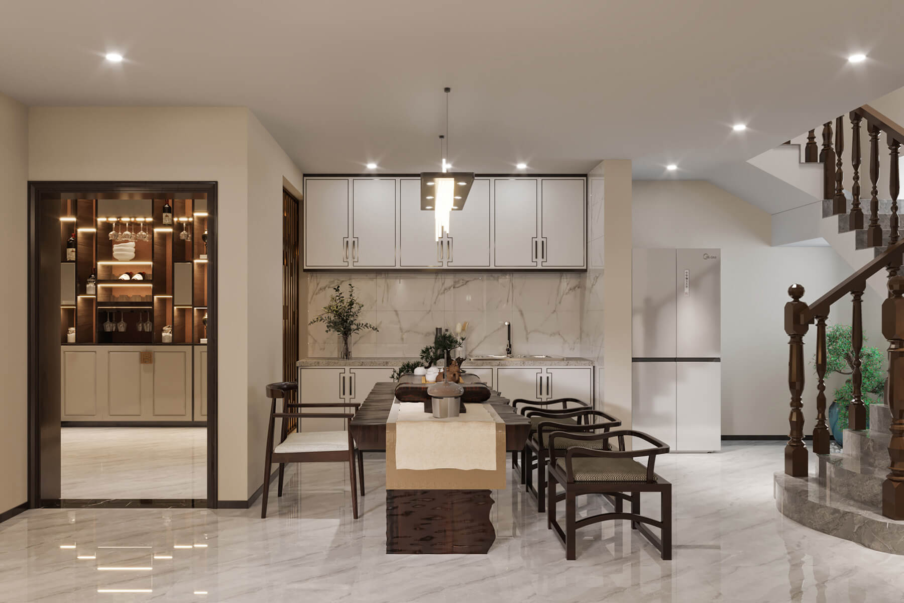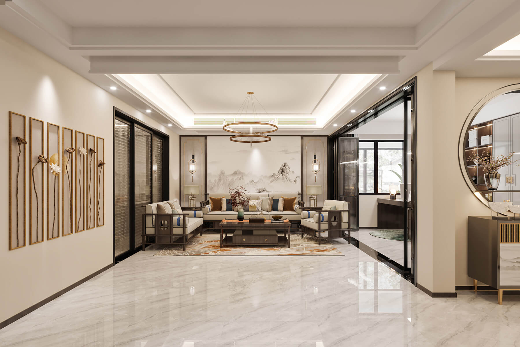 本案總面積136㎡,整體采用新中式風格設計。沿襲傳統江南風情,蘊藏著悠然詩意的傳統文化在空間中娓娓道來。東方的風韻與藝術的雅致,以簡練的手筆,營建清寧澄凈的氣質與芳華。
