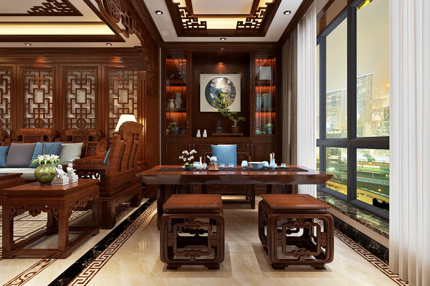 施工面積:120-150㎡| 設計風格:中式風格