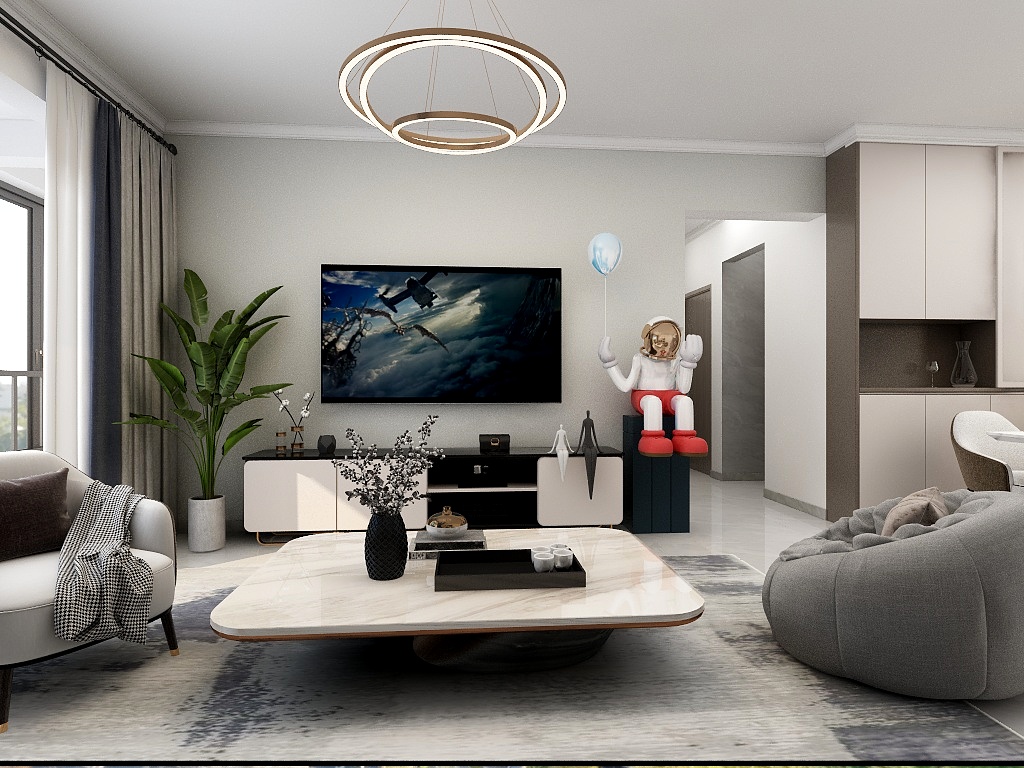 本案例戶型為:3房2廳2衛,總面積115㎡。以簡潔而高級的設計手法,塑造閑適的生活意境。設計師最大保留自然光線,給予空間輕盈通透的品質感,為居住者提供舒適溫馨的居住環境。