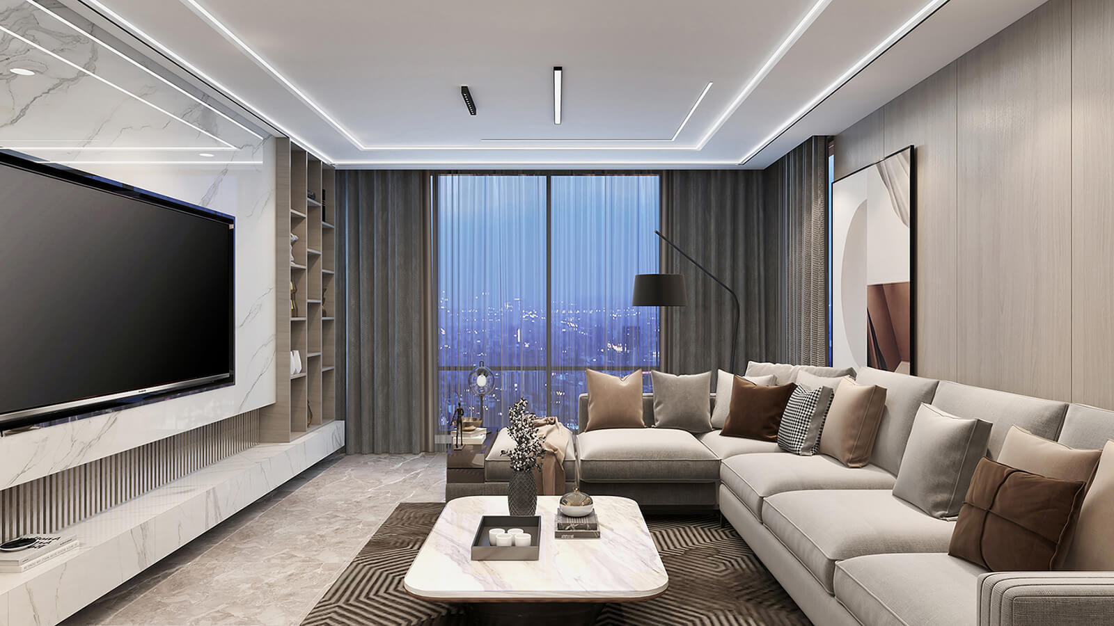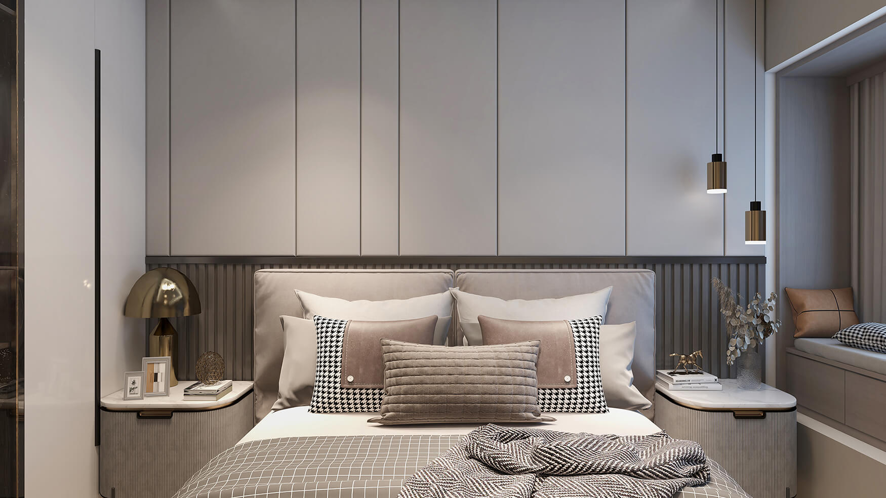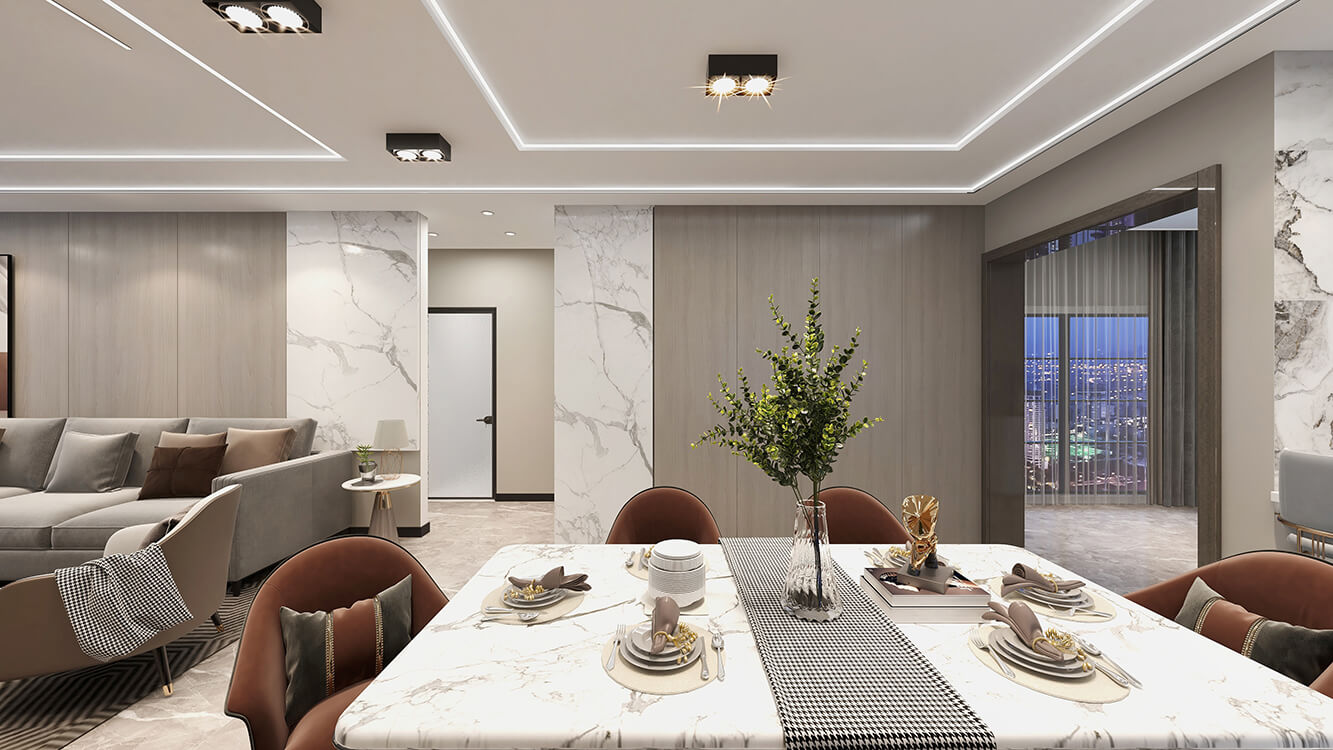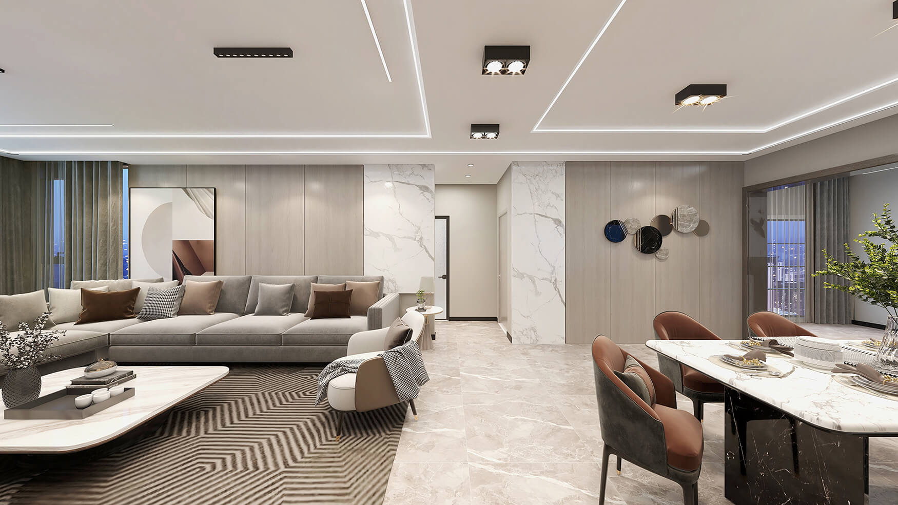 設計師采用大面積的白色作為主基調,再以灰色作為輔色,以金屬元素以及輕奢擺件作為點綴,為業主提供一個富有高雅情調的居住環境。