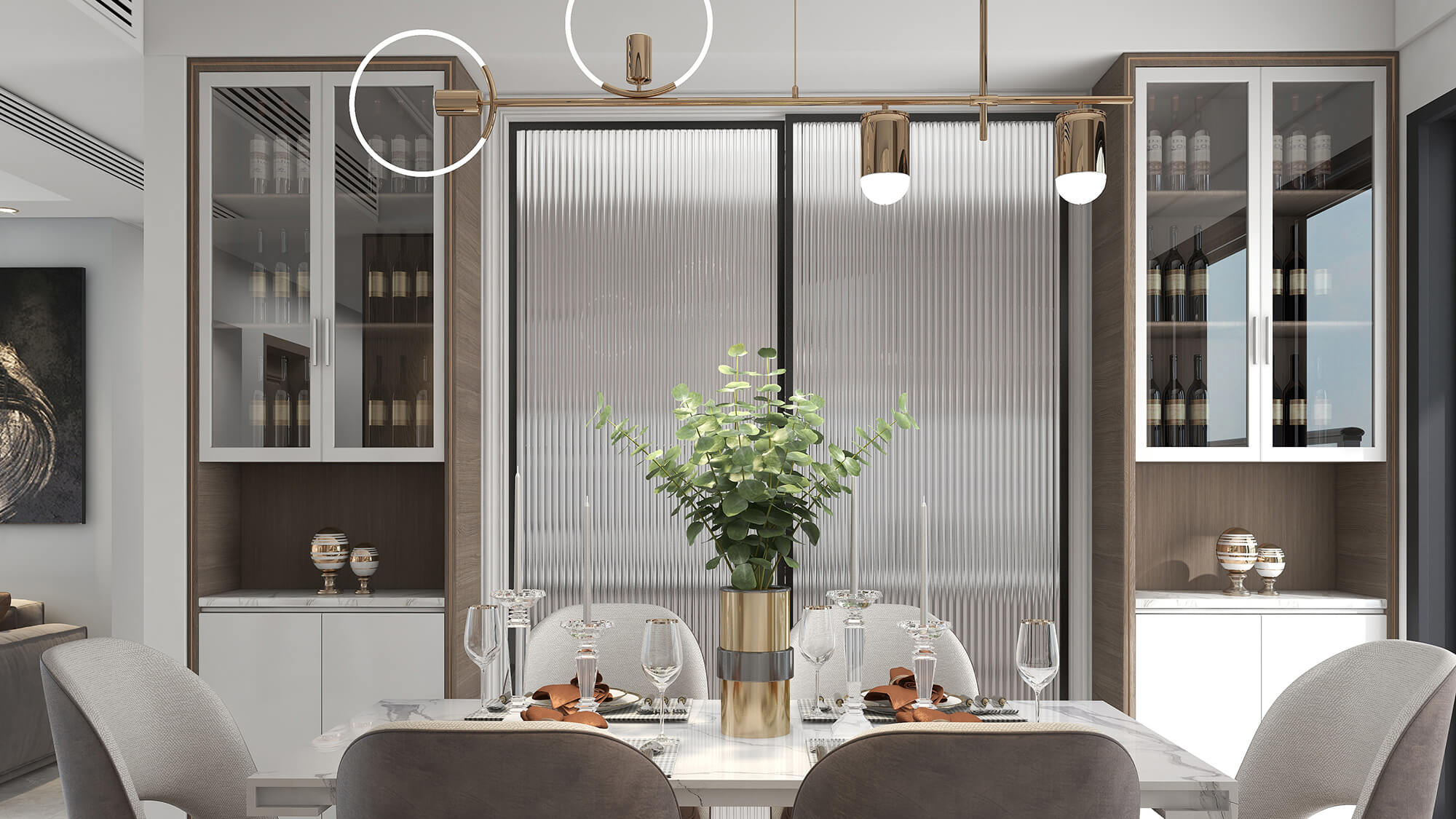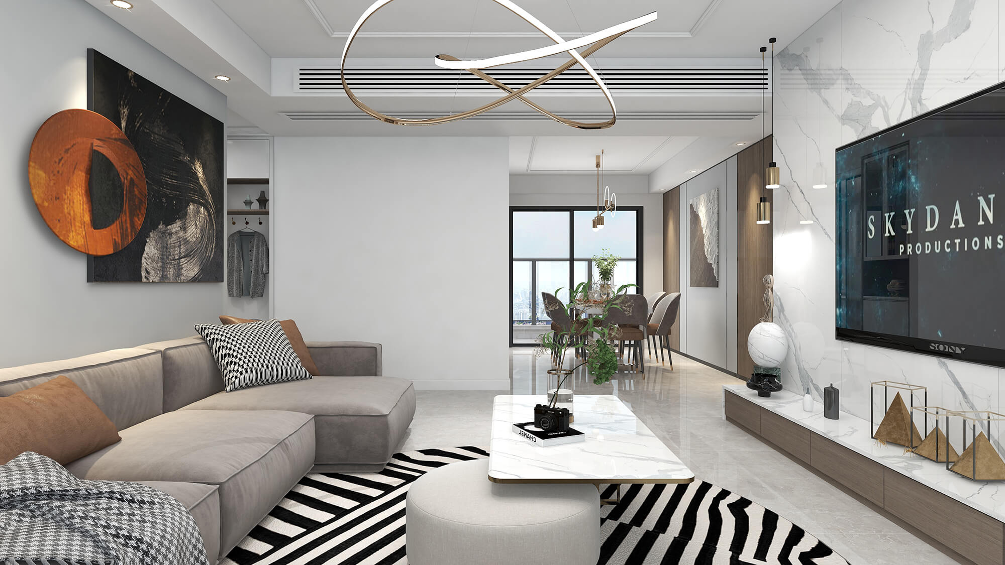 本案為125㎡的現代輕奢風格案例。軟裝設計區別于硬裝創造出的理性視角,以藝術化的主題色遵循空間初衷,從時尚空間中汲取靈感,捕捉流動的想象,營造自由夢境的層次感和深邃感,帶來品位生活的沉浸體驗。
