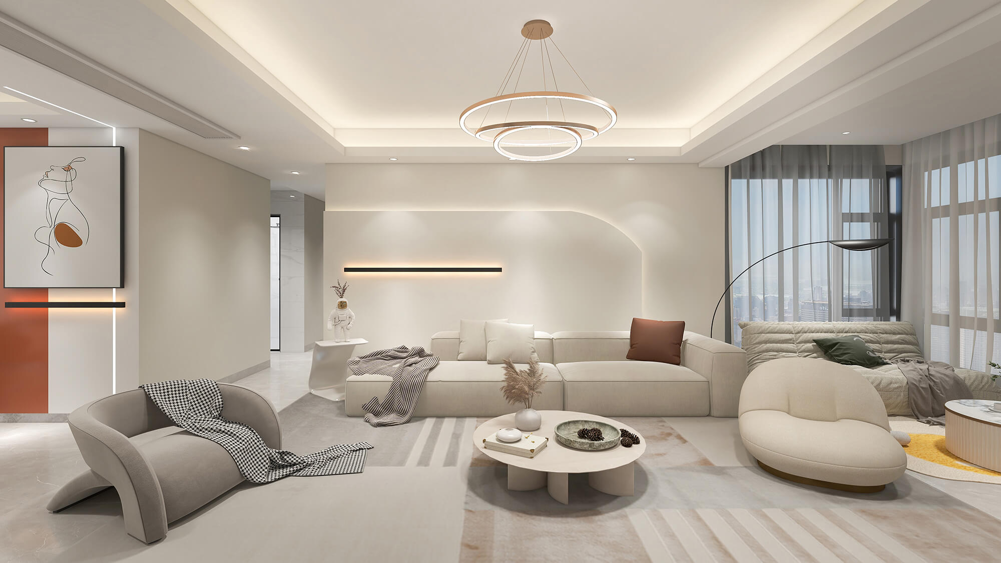 本案例戶型為:4房2廳3衛,總面積100㎡。極簡的設計構思,帶來身心的極大釋放,繁華喧鬧的城市仿佛被隔絕在外,寧靜的氛圍讓人放下心理的防線,更加自由自在。