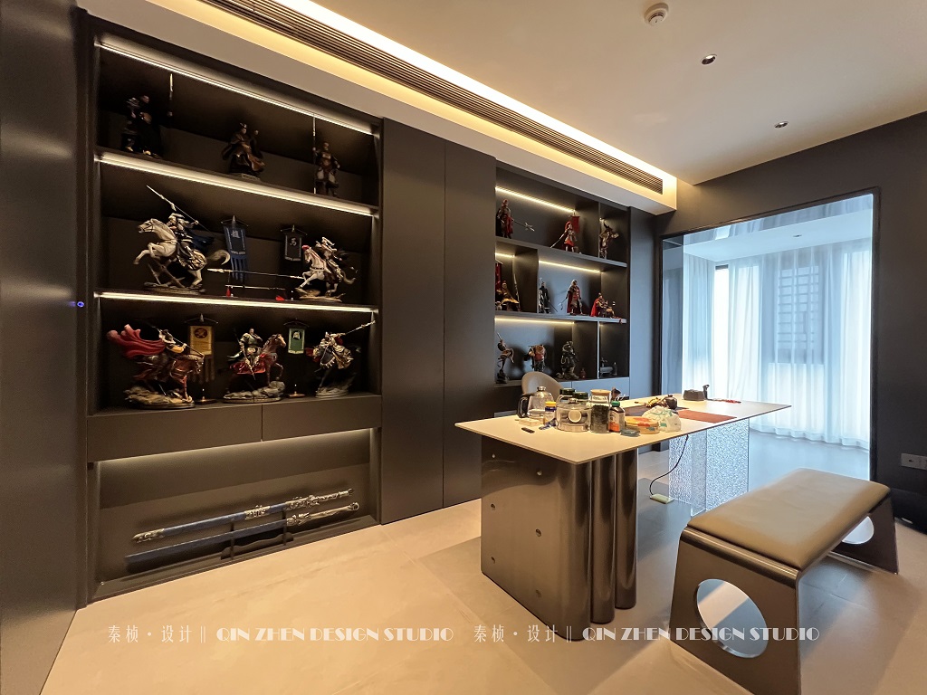 瀏覽量:743戶型改造: ◆原戶型的5房直接改成2房,入戶封閉廚房拆除; ◆將原有的老人房拆除做成半開放式書房+茶室; ◆把次臥做隱藏門隱秘空間、打通陽臺; ◆原有的封閉式廚房做成開放式廚房; ◆靠近主臥的次臥打通,做成衣帽間;