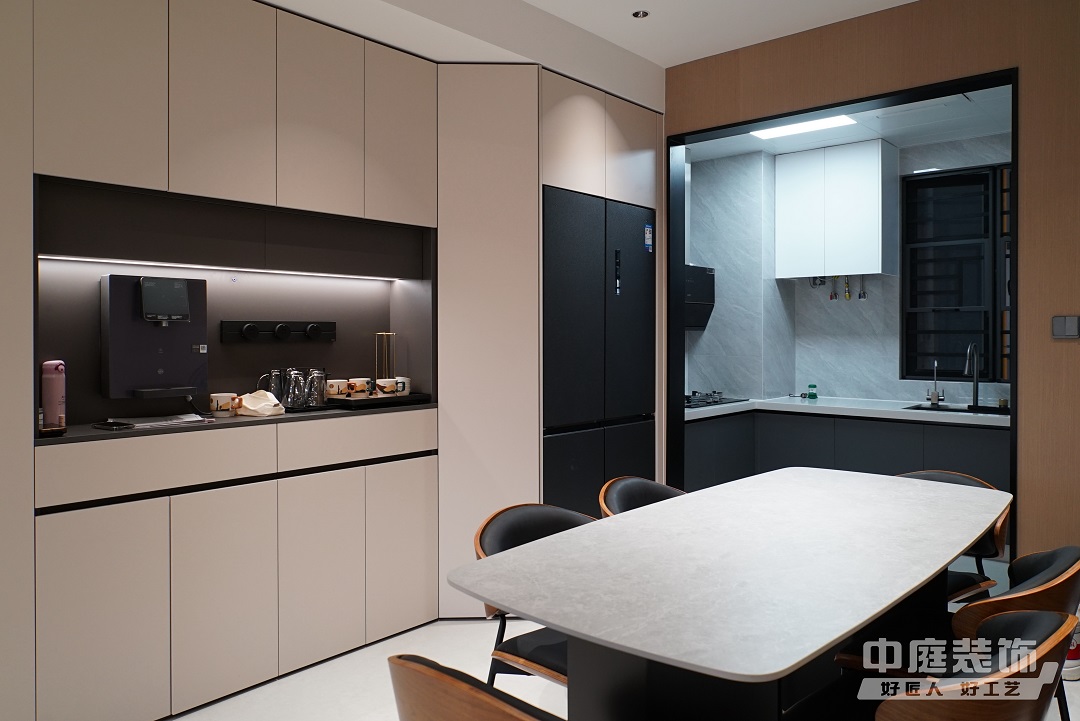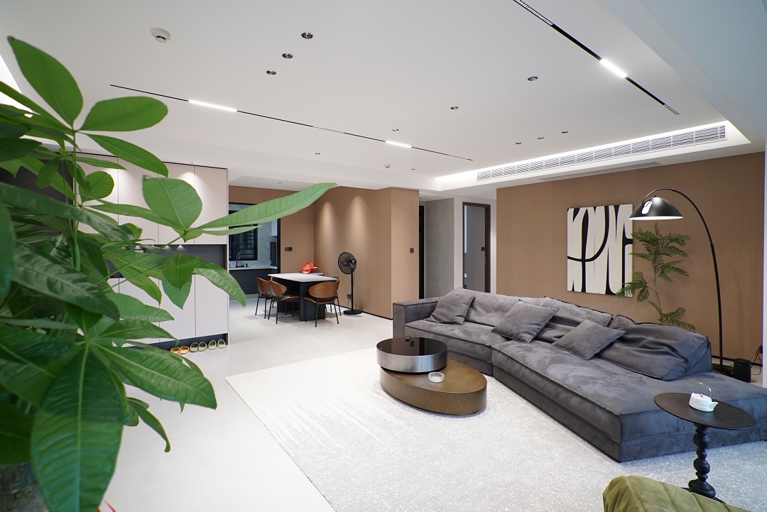 西園潤府136㎡的現代簡約風三居室,大橫廳+無主燈的設計,動區空間給人感覺寬敞又明亮。整體以高級灰為主基調的設計,加上優雅的軟裝設計,也讓整個家變得更加舒適有質感。
