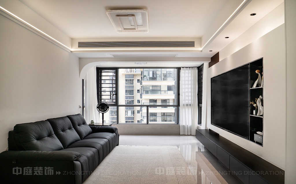 整個家以黑、白、灰為主色調,簡約又高級??蛷d電視墻的設計很有層次,黑白柜體搭配大理石元素,質感拉滿;餐廳的黑色大理石餐桌盡顯格調。玄關的黑色木門和“喜樂平安”的細節,又添了幾分溫馨。廚房的灰色系櫥柜實用又美觀,衛生間把洗衣區和洗漱區結合,大理石臺面太顯質感了!整體風格利落大氣,每一處都透著精致,是現代年輕人都愛的極簡高級感沒錯了~