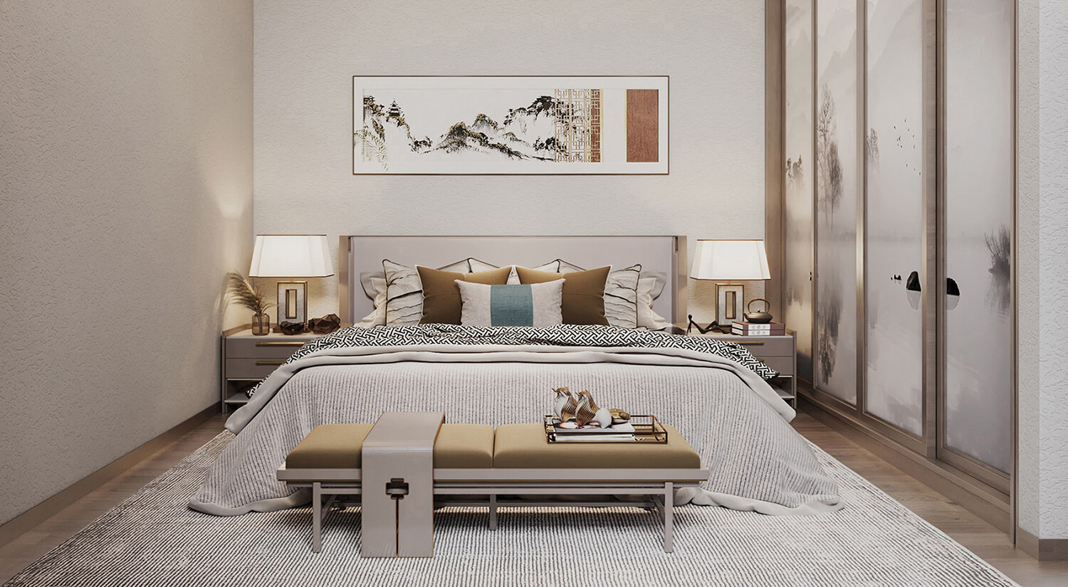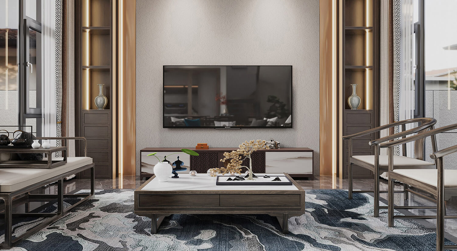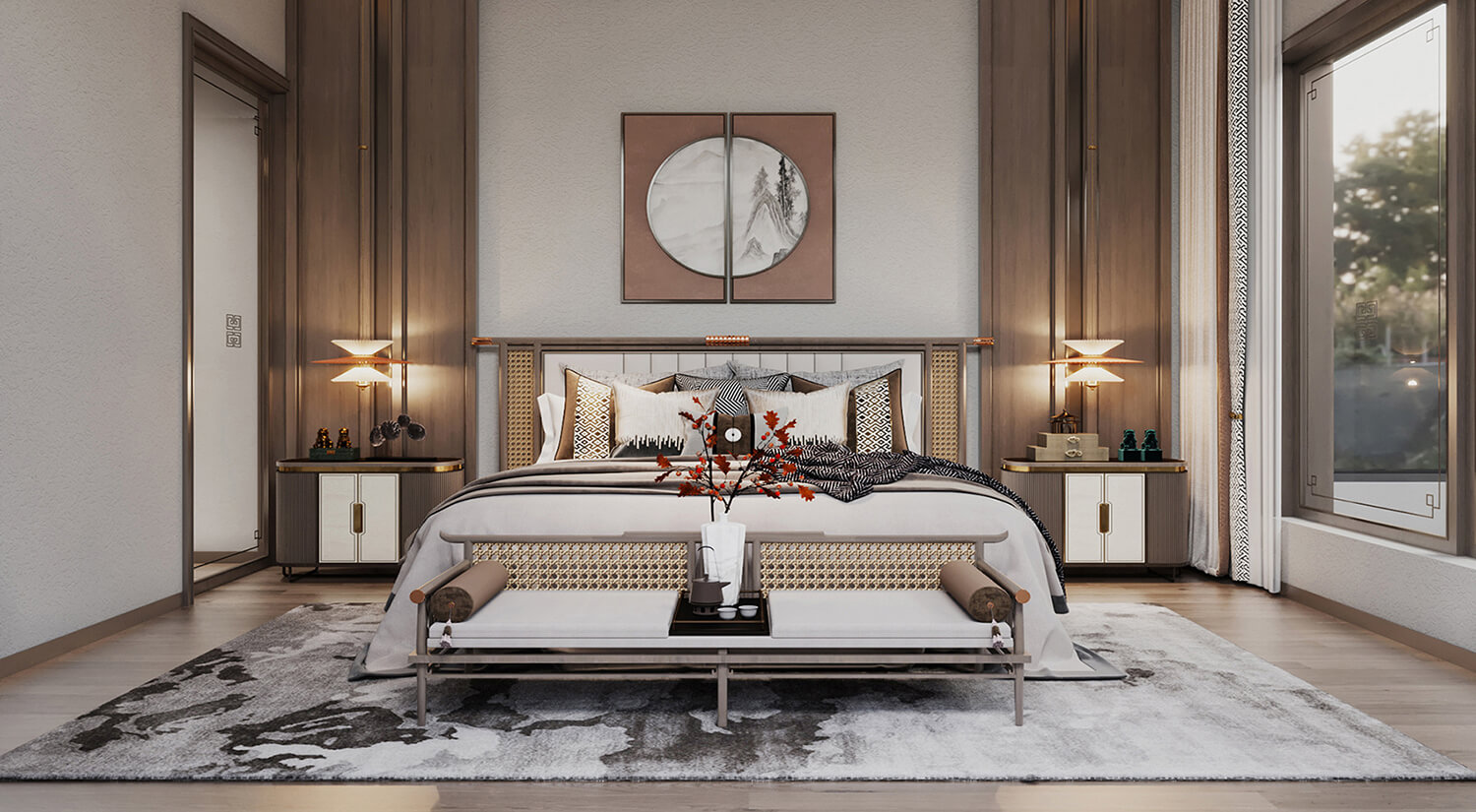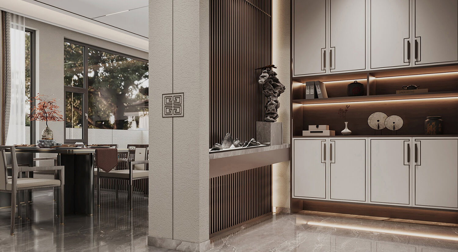 本案例戶型為:6房2廳3衛,總面積216㎡。這是一個新中式風格案例,新中式風格的設計手法強調傳統文化與現代設計的融合,注重空間布局和裝飾元素的平衡,打造出具有韻味和現代感的空間。