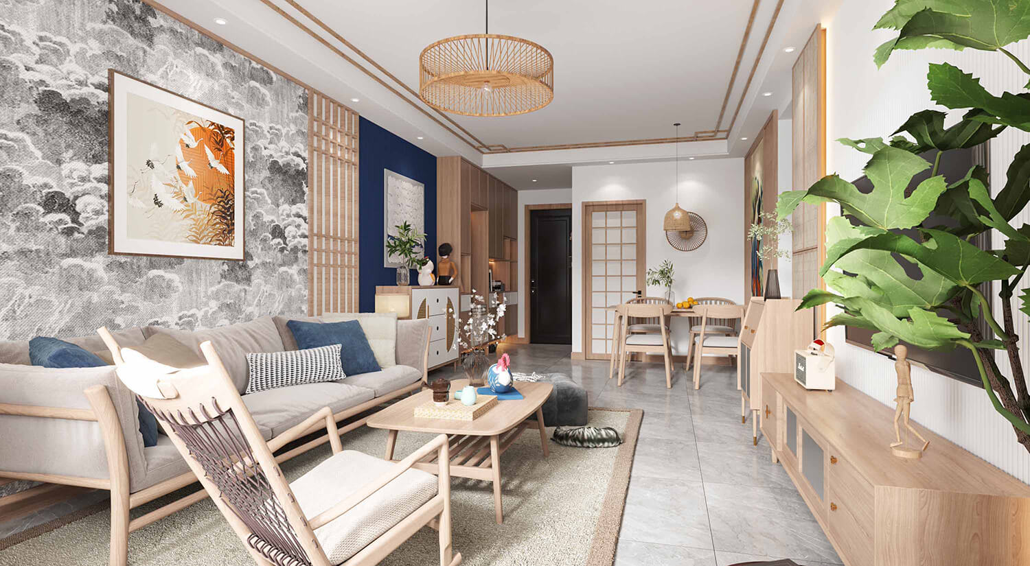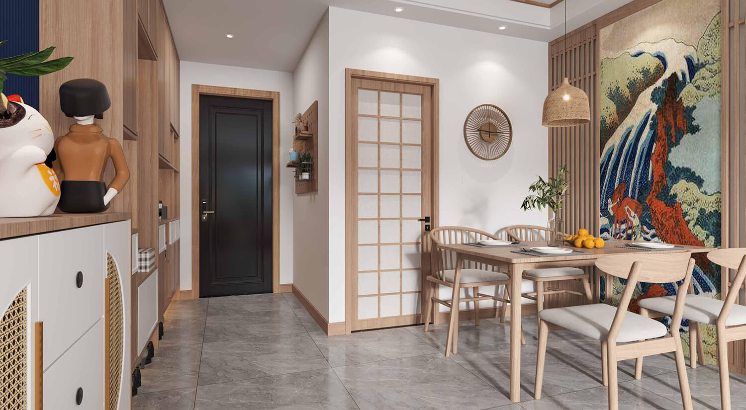 日式風格的空間布局以簡潔和流暢的線條為主要特征,強調自然光線的利用和空間的開放性。通常采用開放式布局,強調室內空間的流動性和連貫性,將不同的空間區域融為一體。
