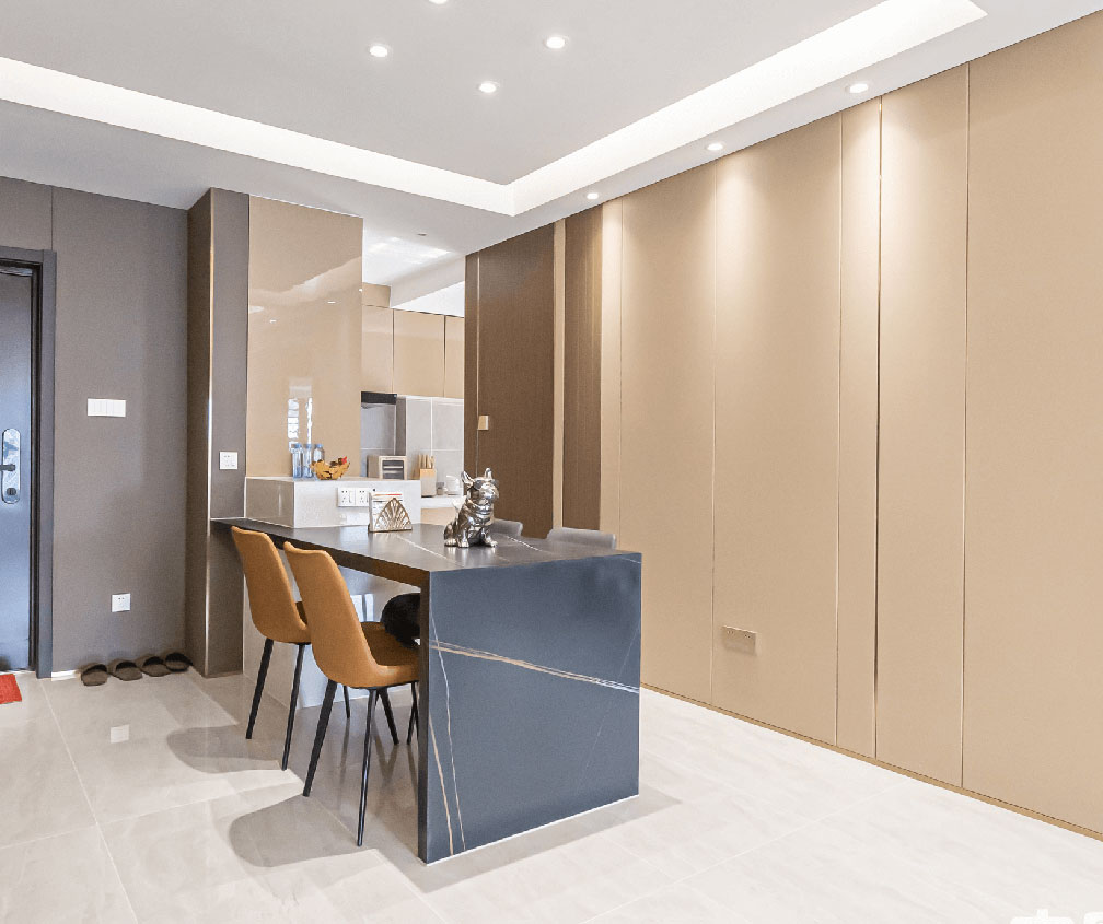 無(wú)論是石英石也好、瓷磚也好,還沒(méi)有哪種材料,既能達(dá)到大理石的美貌,又能實(shí)現(xiàn)堅(jiān)固耐用的功能,直到巖板的出現(xiàn),交織出大氣而端雅的秩序美與層次感,為空間的內(nèi)在精神找到恰到好處的外在表現(xiàn)形式,在創(chuàng)新中演繹生活的格調(diào)。