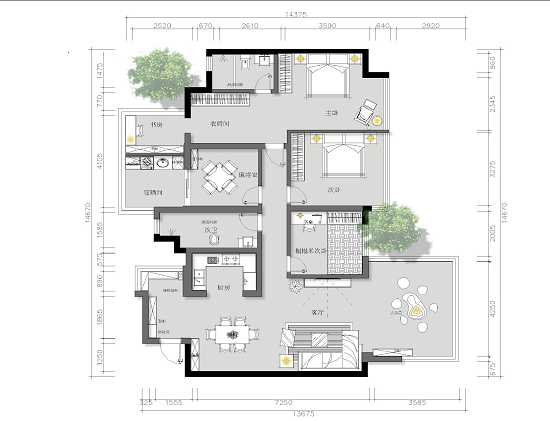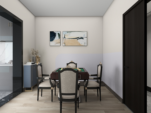 客廳、餐廳廚房是室內空間里非常重要的區域,同時也占據了室內的大部分空間。業主想要一個舒適大氣的客餐廳,希望設計師能在作品空間中展現的靈活性和延伸感,通過應用線條的變化,色彩變化及不同筆法表現畫面的虛實與美感。女主人對麻將情有獨鐘,想擁有自己的麻將室。